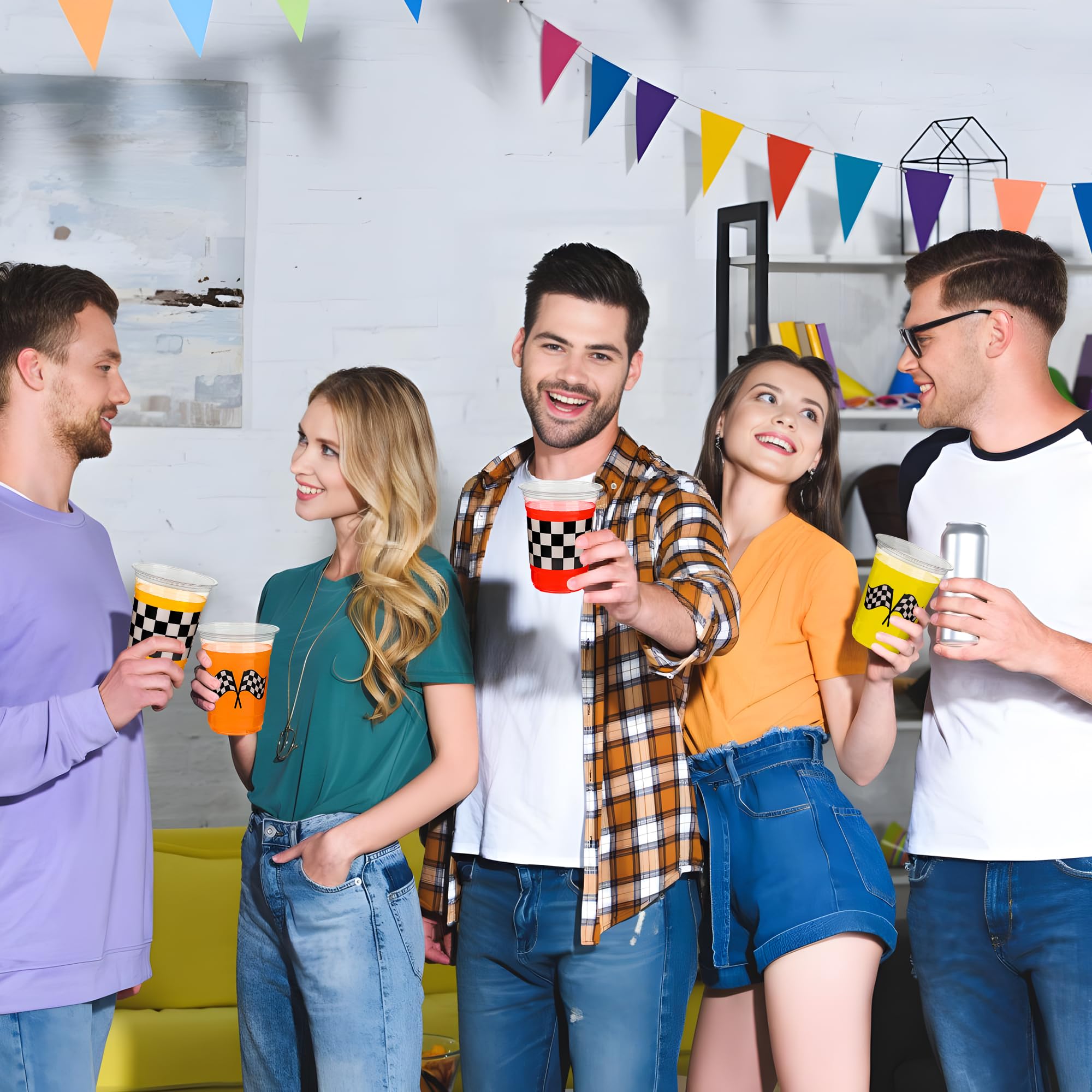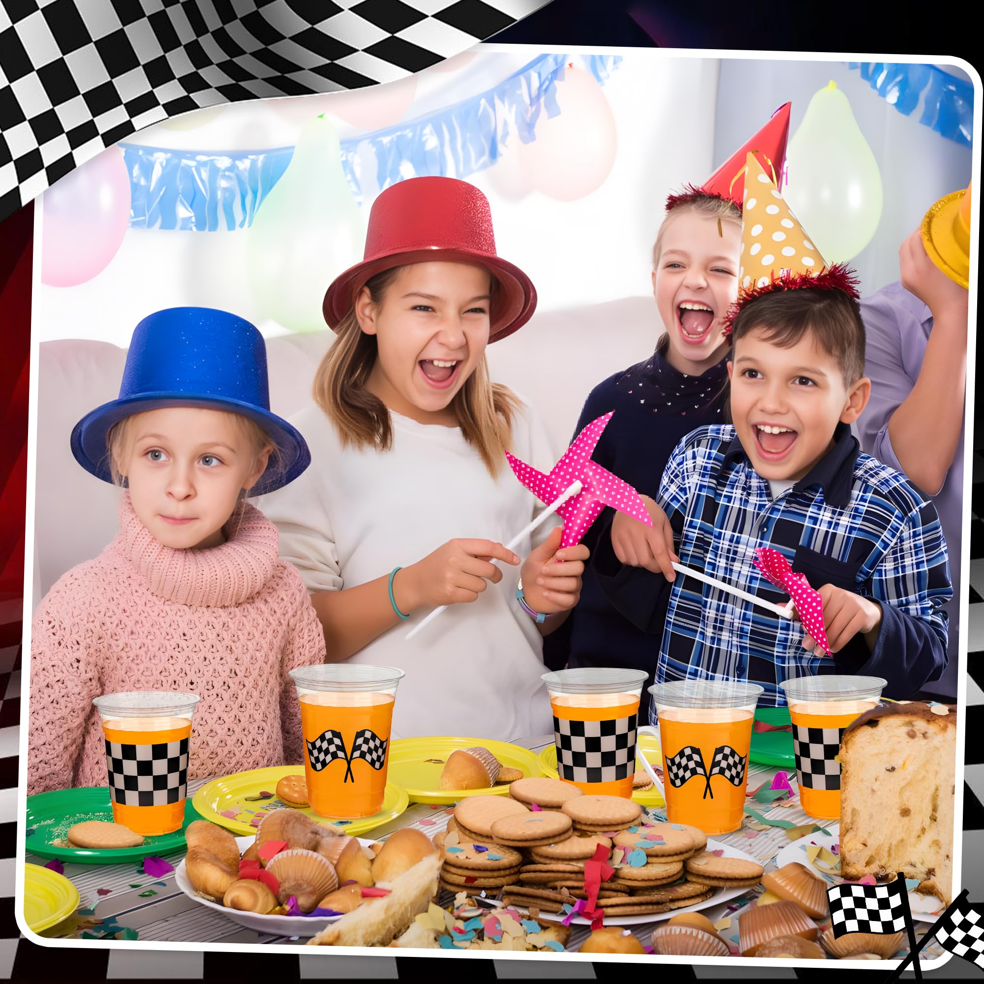 Wide range of applications: the checkered flag racing party cups are perfect for birthday, anniversary, baby shower, hot wheels party, racing car themed party, holiday party, family gathering and more, ideal for holding various types of cold drinks and snacks, such as milk, beverages, ice cream, soda, juice, candy, snacks, fruits and more.