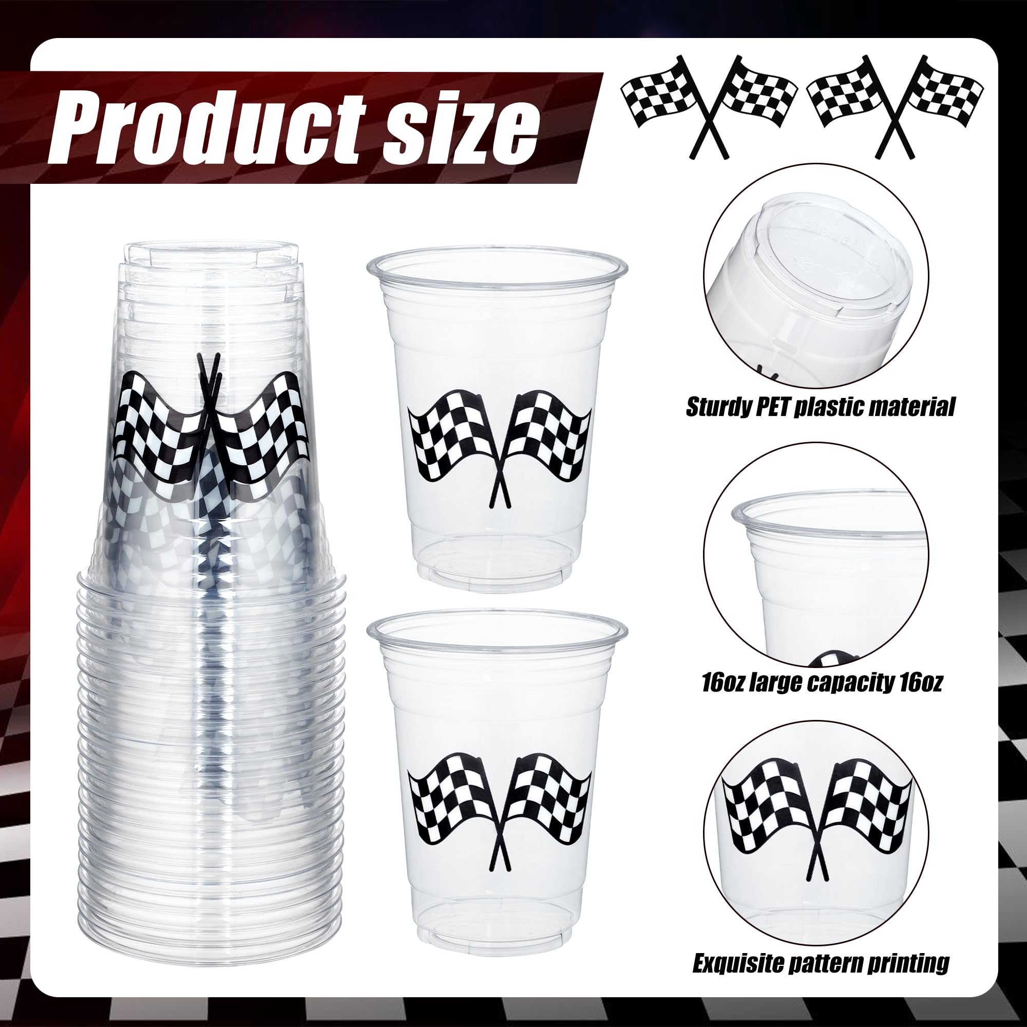 Convenient to use: the checkered clear beverage cups are disposable, you can throw them away and enjoy more time with your guests, these disposable cups bring you more convenience; the race car themed drinking cups can create a stronger party atmosphere for your celebration.