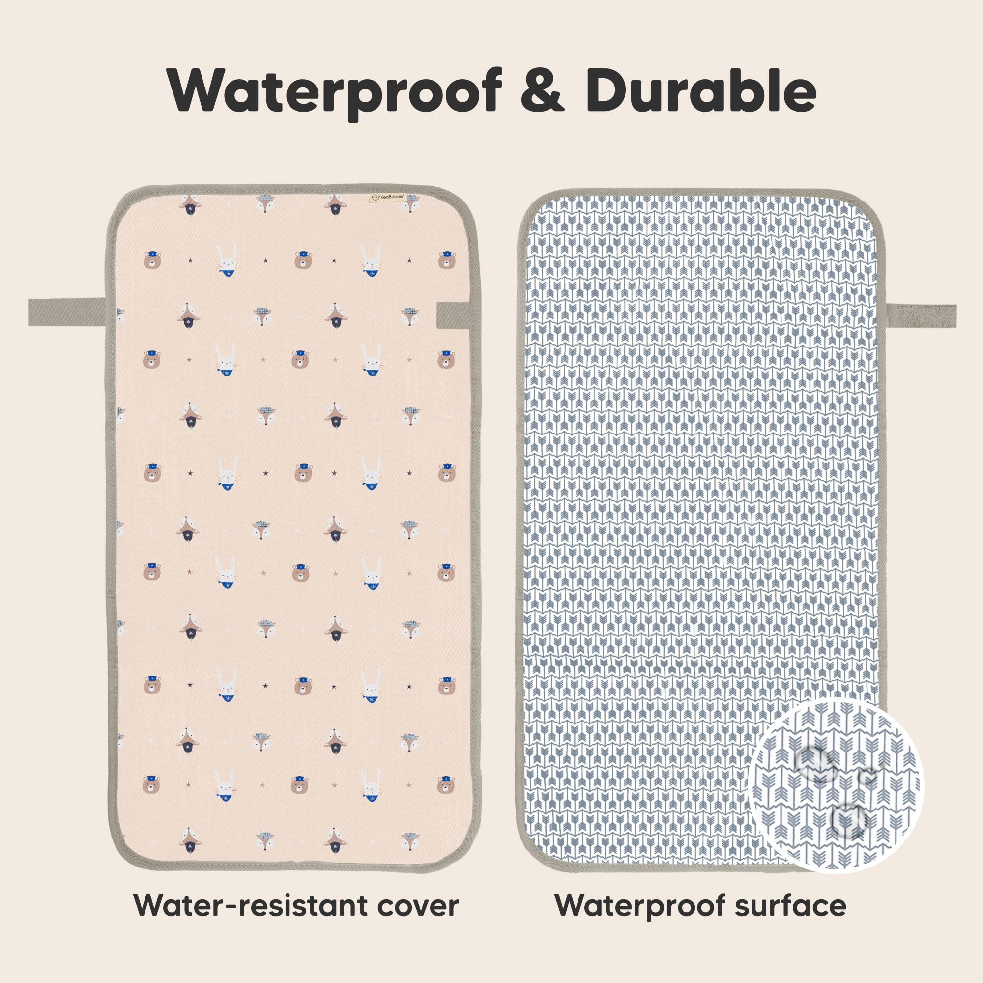 Waterproof Diaper Changing Mat - We use high quality, waterproof and smooth diaper changing surface for easy spot cleaning while on the go. Simply wipe clean with wet wipes or sanitizer after each use.
