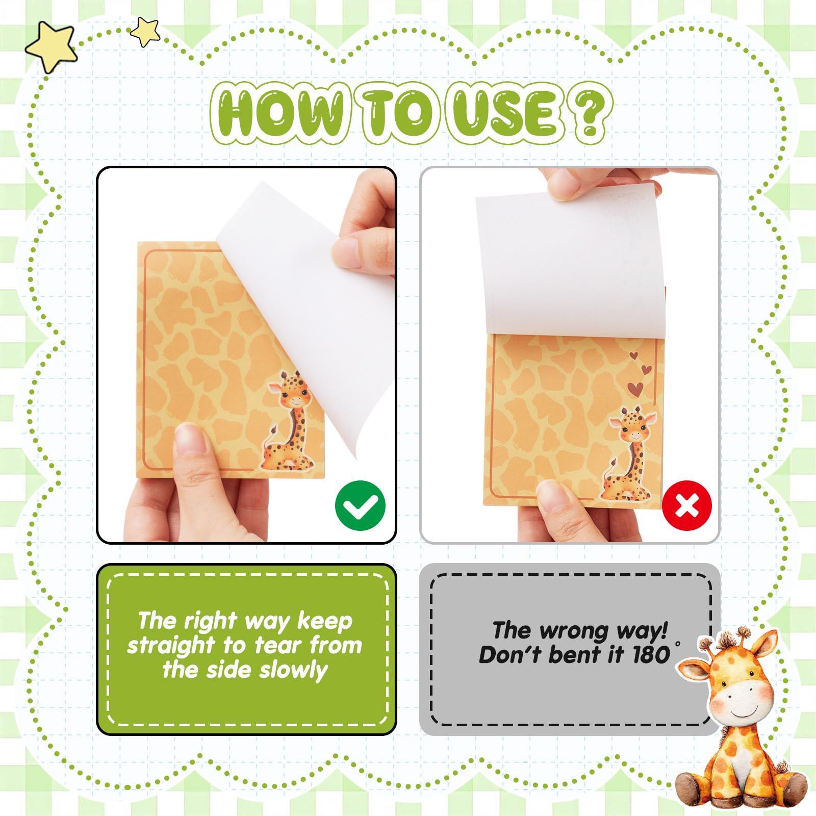 Sticky and Removable: with good adhesiveness, these giraffe pastel sticky notes can be easily pasted on smooth and dry surfaces, such as textbooks, notebooks, refrigerators, blackboards, walls, windows, doors, bulletin boards and so on, and they can be easily removed without leaving stains