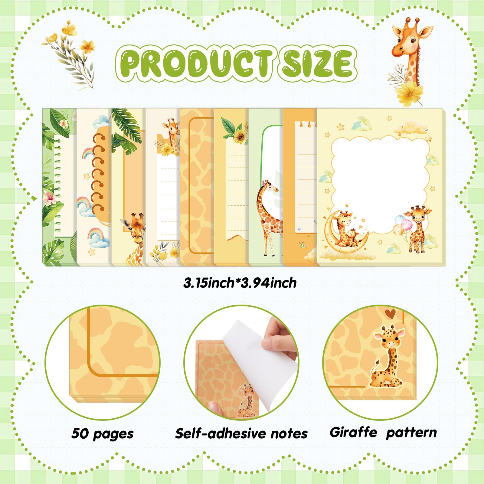 What You Will Receive: the package contains 9 pieces of giraffe cute sticky notes in 9 different designs, 50 sheets for each pad, the abundant quantity and interesting design can meet your daily use and replacement needs, which you can share with your friends and colleagues