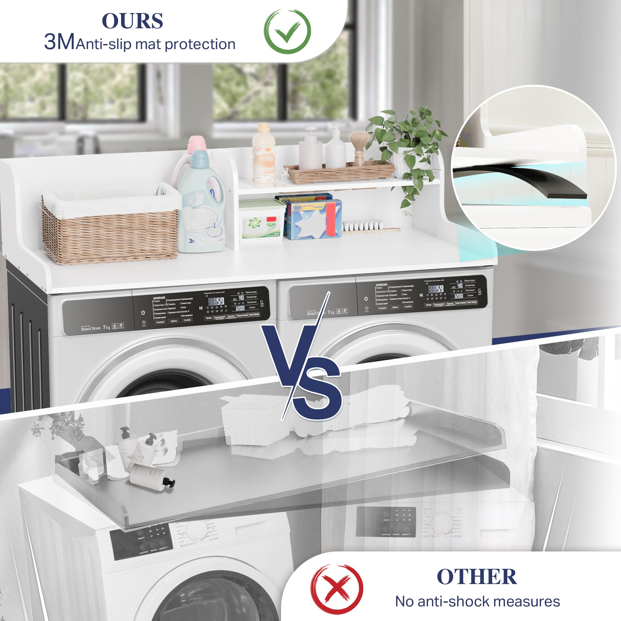 ANTI-SLIP: The washer dryer countertop including two 27.6 inches long and 1.2 inches wide 3M anti-slip strip at the bottom. This strip could help the countertop to keep stable and prevent from falling or sliding during vibrations.