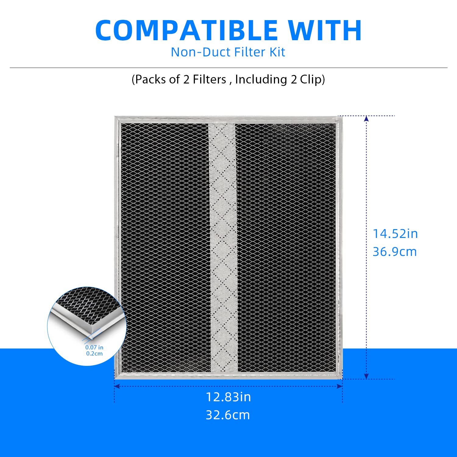 2 filters per package,Filter dimensions: 15.72” x 13.90” x 0.20”Each set includes two top-notch range filters and four reliable clips. Now keep your kitchen air fresh and free from unpleasant odors and grease effortlessly.