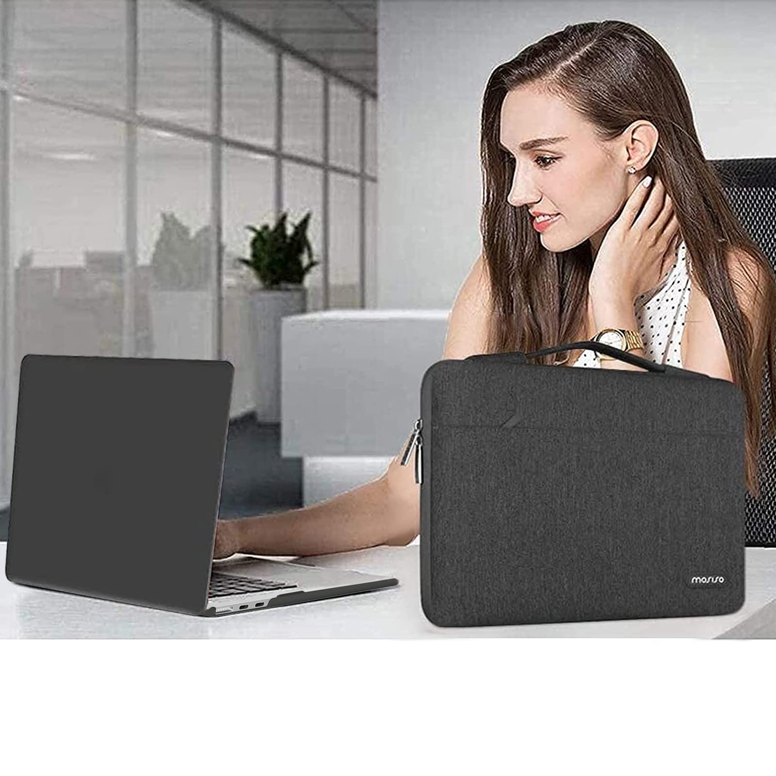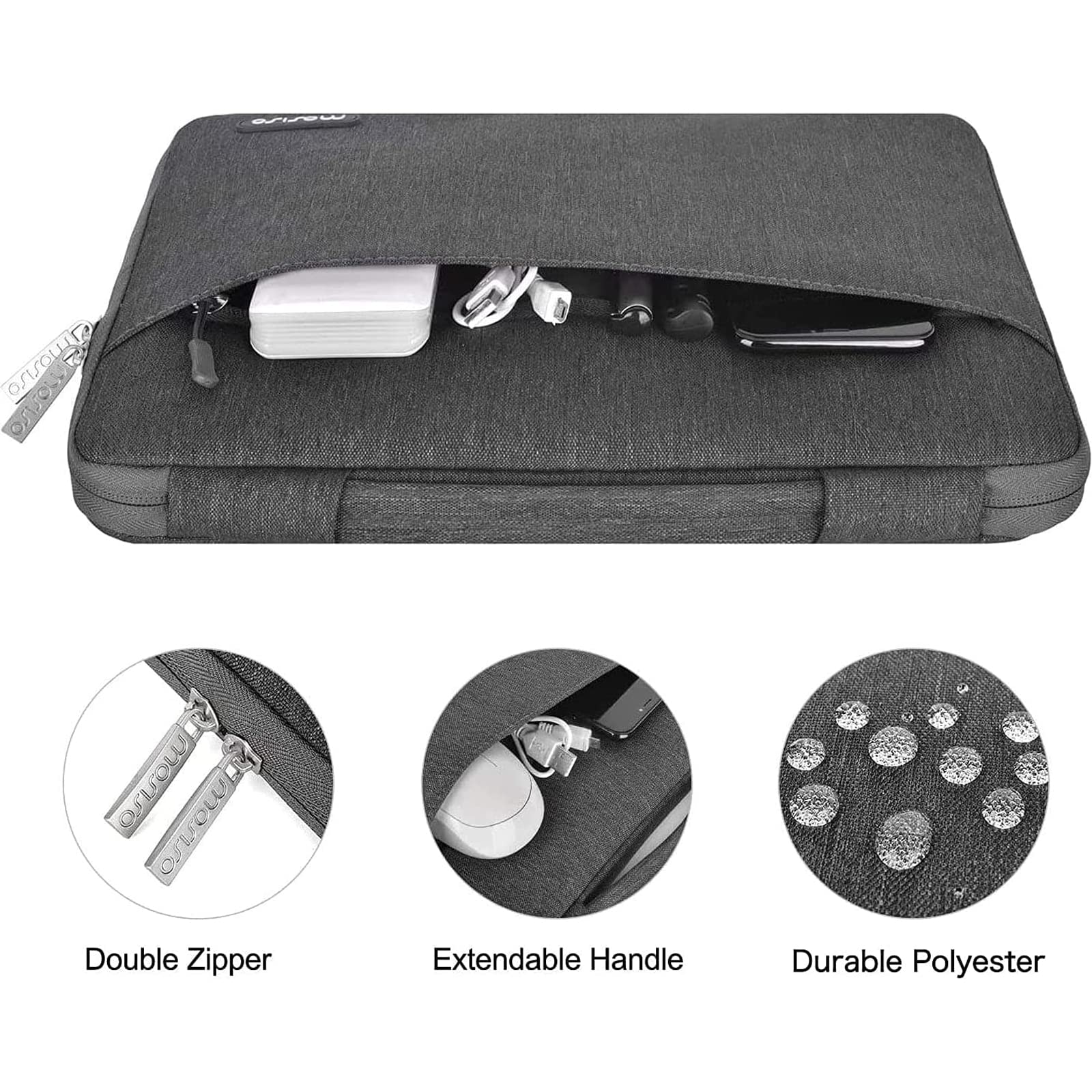 The 360 degree protective shockproof laptop sleeve with handle carrying bag internal dimension: 13.39 x 9.25 x 0.79 inches (L x W x H); external dimension: 13.98 x 9.84 x 0.79 inches (L x W x H). The front side pocket dimension: 11.61 x 9.25 inches (L x W). Made of polyester material, protect your laptop against accidental spills. Slim and lightweight, does not bulk your device up and can easily slide into your briefcase, backpack or other bag. Ideal for business, daily and travel.