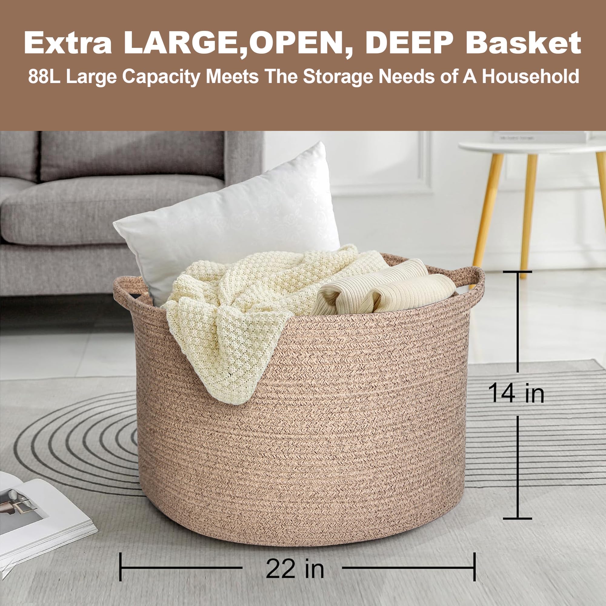EXTRA LARGE CAPACITY BASKET: 22x22x14 inches XXXL baskets for the blanket. Big and deep enough to hold a couple of pillows and throw blankets. A good blanket storage solution in the living room ensures your throws, quilts, and blankets are within easy reach. 88L toy organizers and storage are great for storing kids' toys like trucks, dolls, and Legos in the nursery.