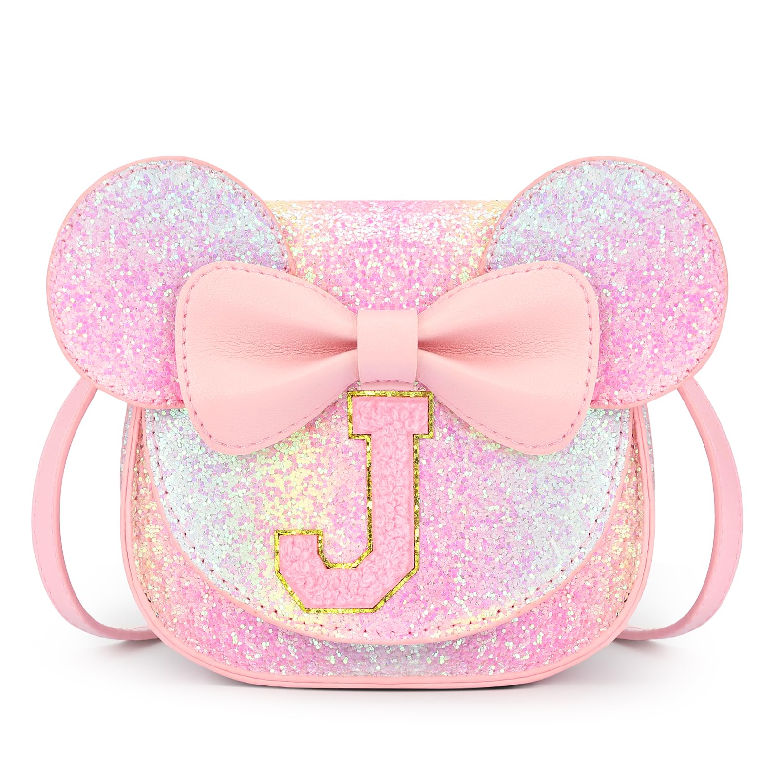 Cute Shape: Patched with a letter,This little girl purse would be a personalized birthday gifts for 6 year old girls or under. Kids would love its mini mouse ears and bow