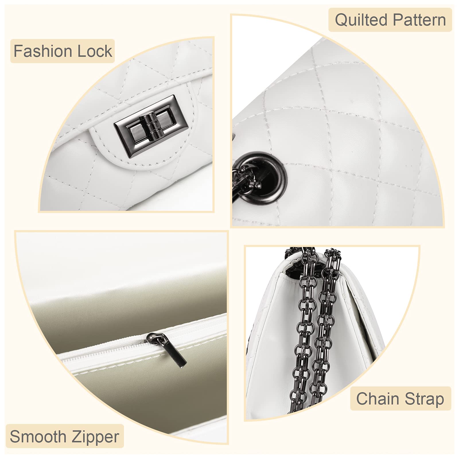 Application: With the chain shoulder strap, it can be used as an underarm bag or a cross-body purse. Totally meet your daily needs, very lightweight and comfortable to carry.