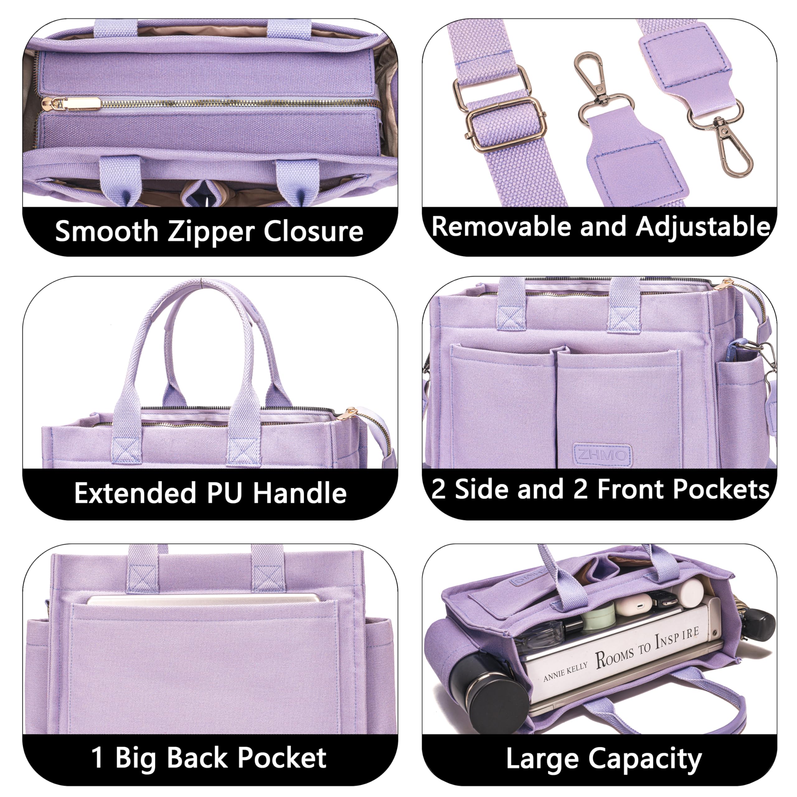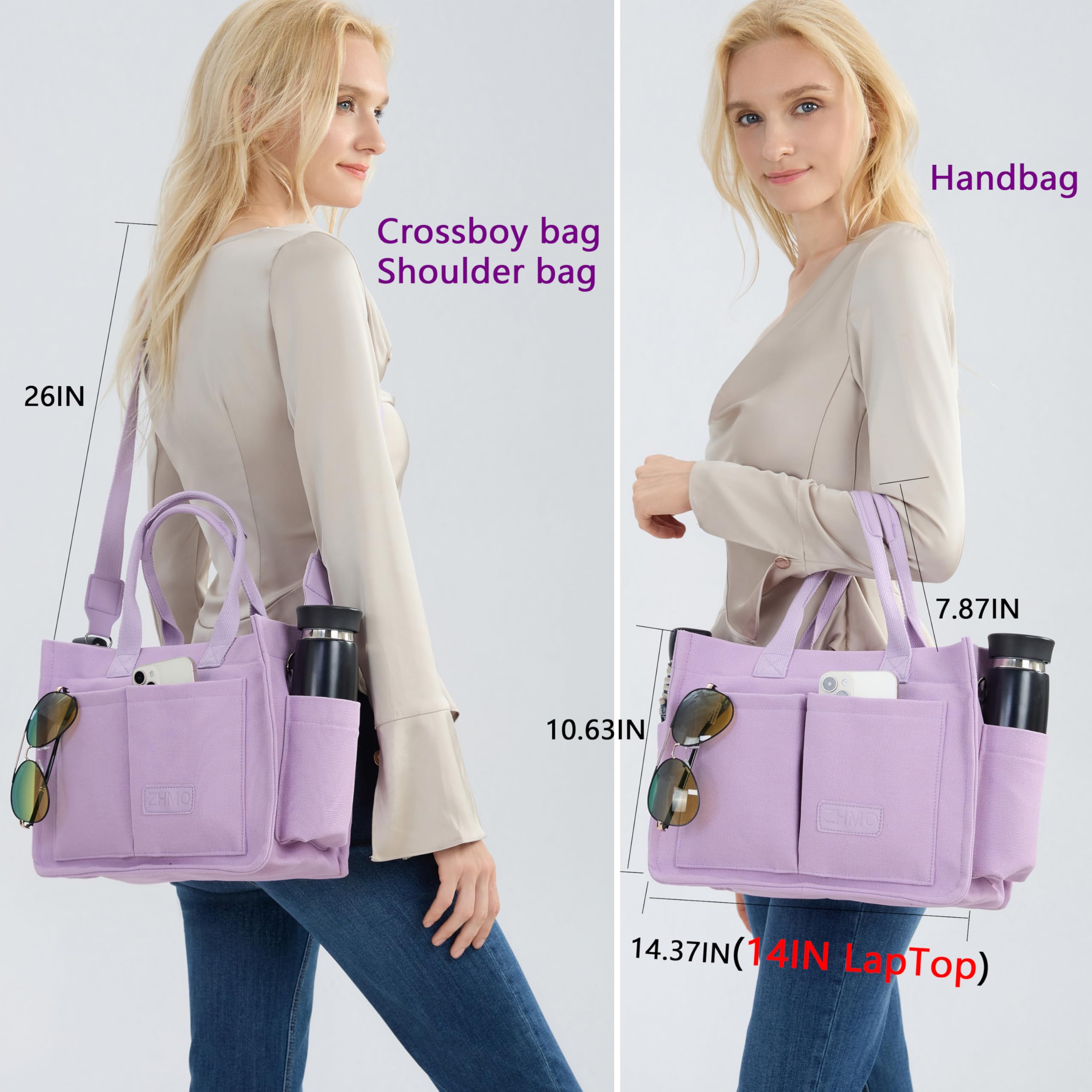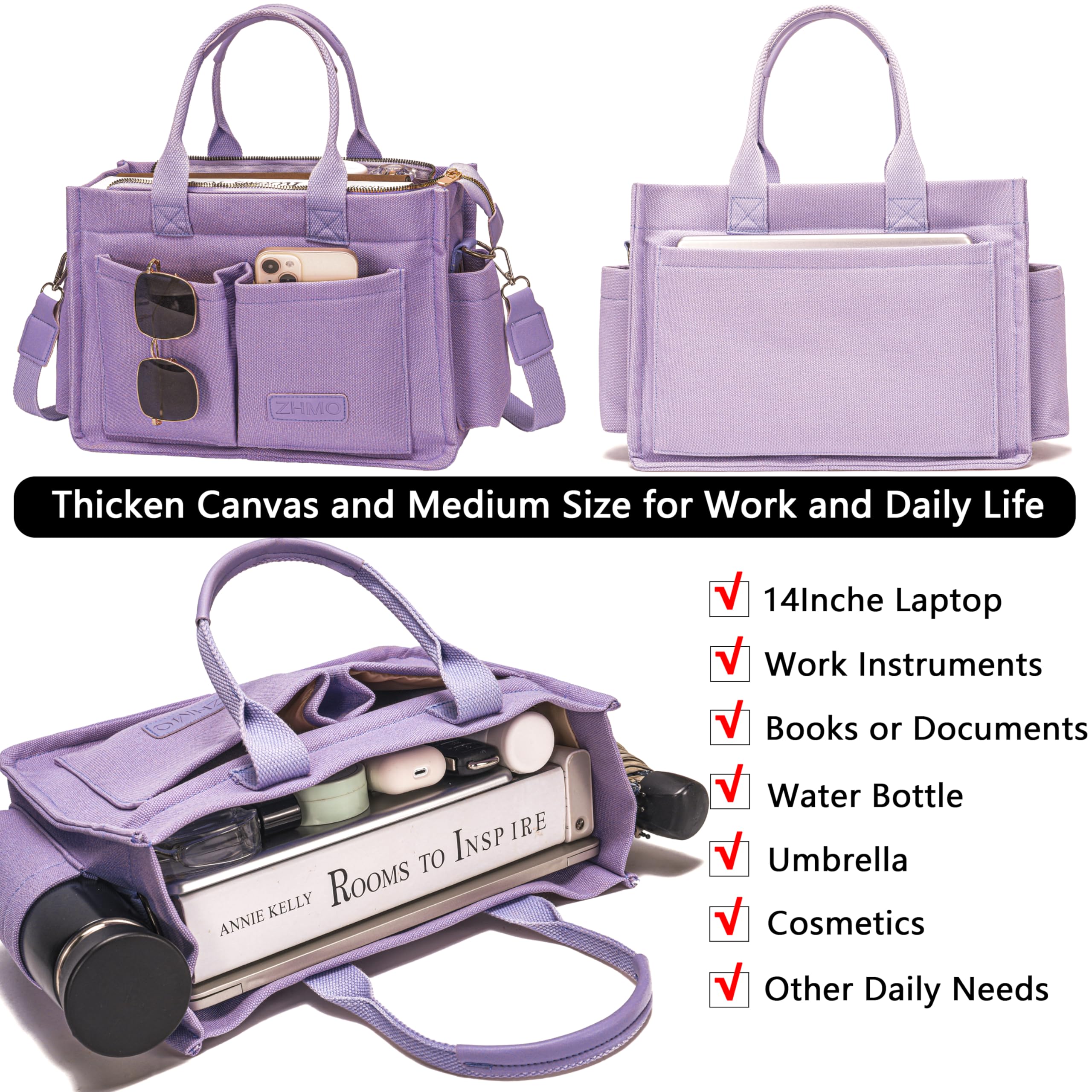 💗Spacious Compartments Organize Well:Designed with padded computer compartment for 14 inche laptop,inner cup holder for tumbler,2 front outside pockets for cellphone and keys items need quick access,2 small sied pockets for 16oz water bottle and folding umbrella,1 big back outside pocket for ipad or magazine,Large main compartment for books,documents,cosmetics and other belongings.