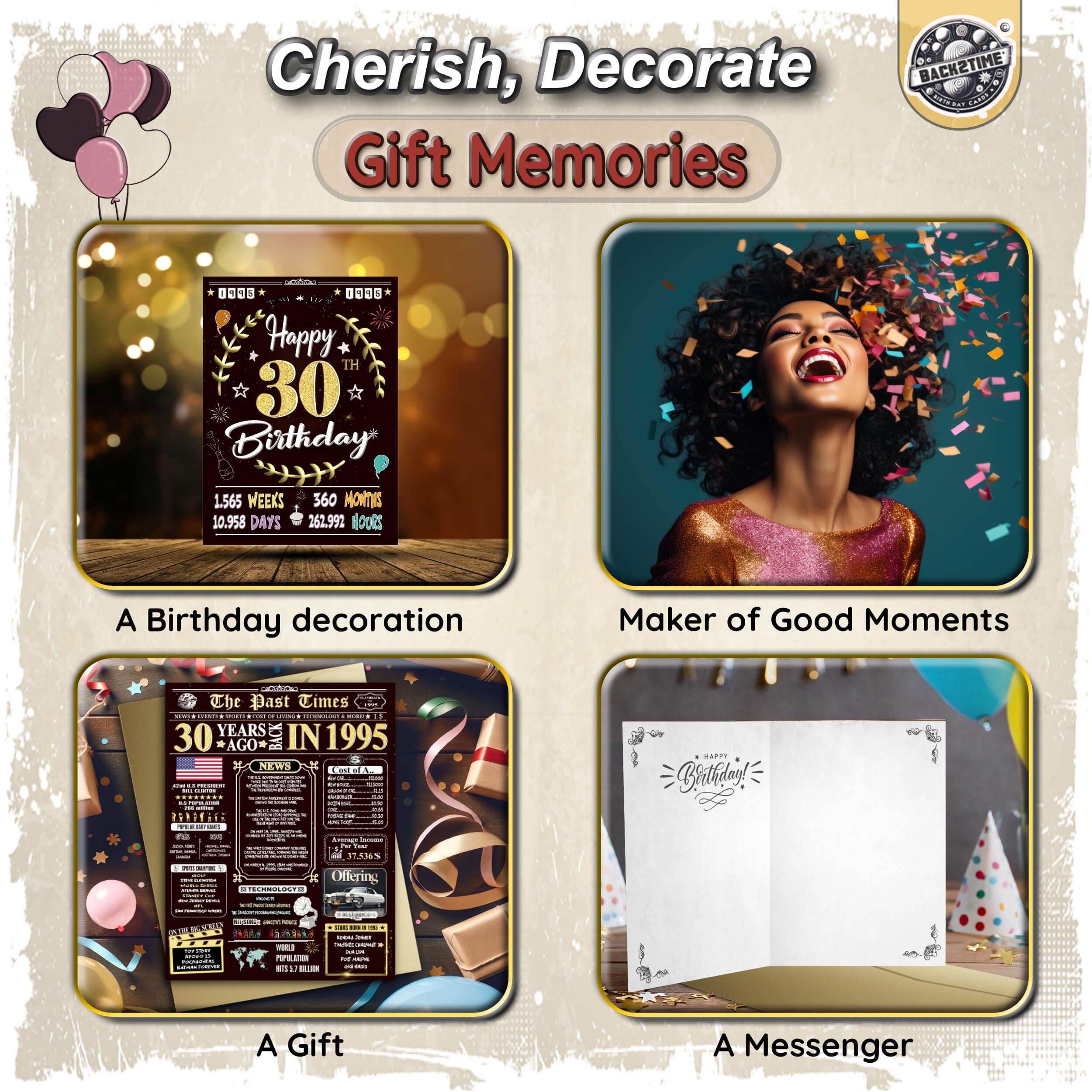 π 30TH BIRTHDAY CARD BACK IN 1995 π Celebrate this special milestone with our premium vintage design. Perfect for men and women, You are looking for a card for brother, sister, husband, wife, dad, mom, cousin, friend β€οΈ. Spread happiness and create unforgettable memories! Ideal for Gifts, 30 Decorations. Happy Birthday Cards for Women, Happy Birthday Card for Her, 30 years old Birthday Decorations for Men, Boy, Boyfriend.