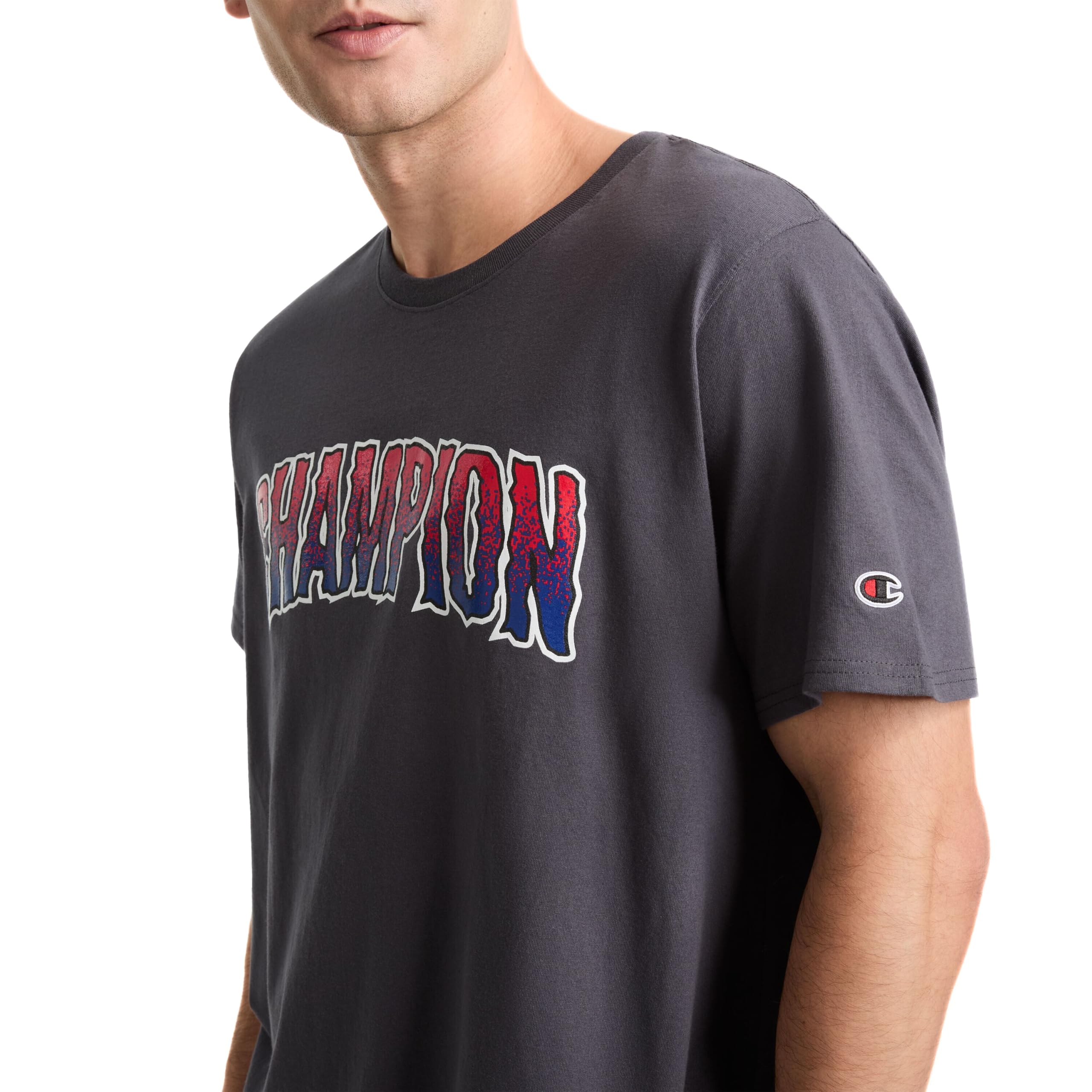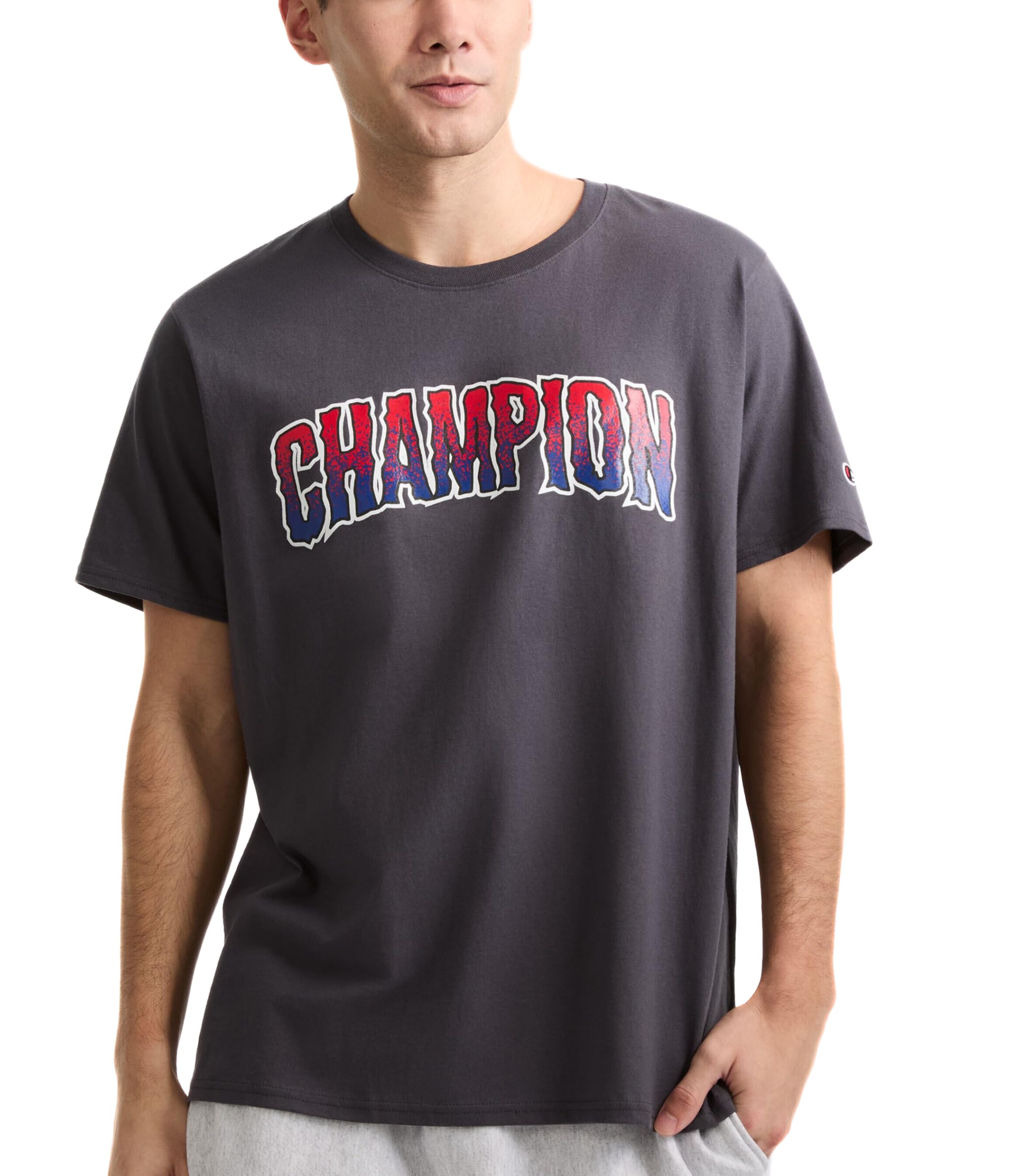 Description Our Champion heritage tee, available in solids and prints, is heavyweight 7 ounce. Jersey fabric. Champion graphics are truly inspired by our archives and our long history of athletic wear. Champion - a step above.