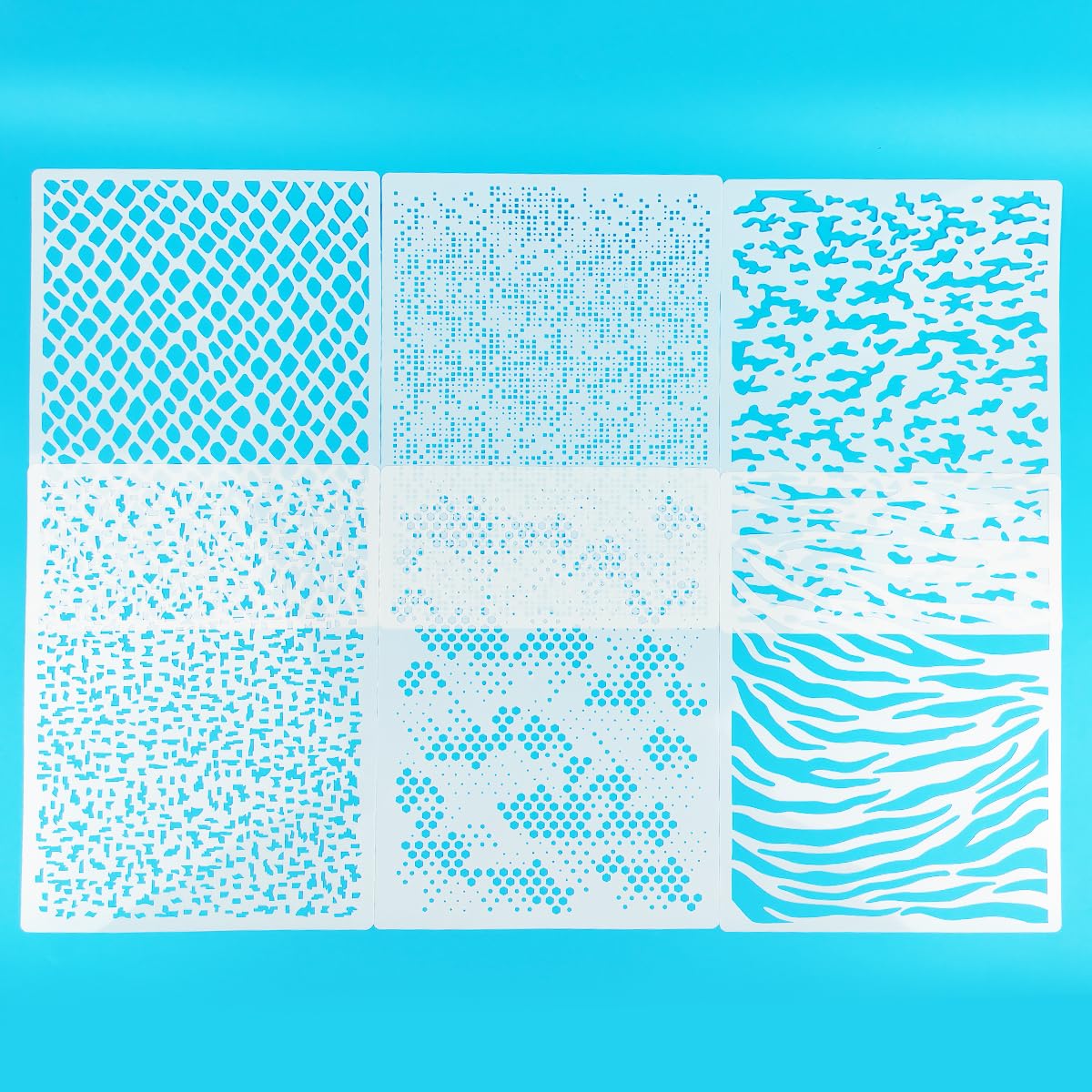 Featuring 12 unique designs, this set offers a diverse range of camouflage patterns and geometric shapes such as digital camo, hexagons, and tiger prints. Each stencil brings a new dimension to your DIY projects, sparking endless inspiration for customization.