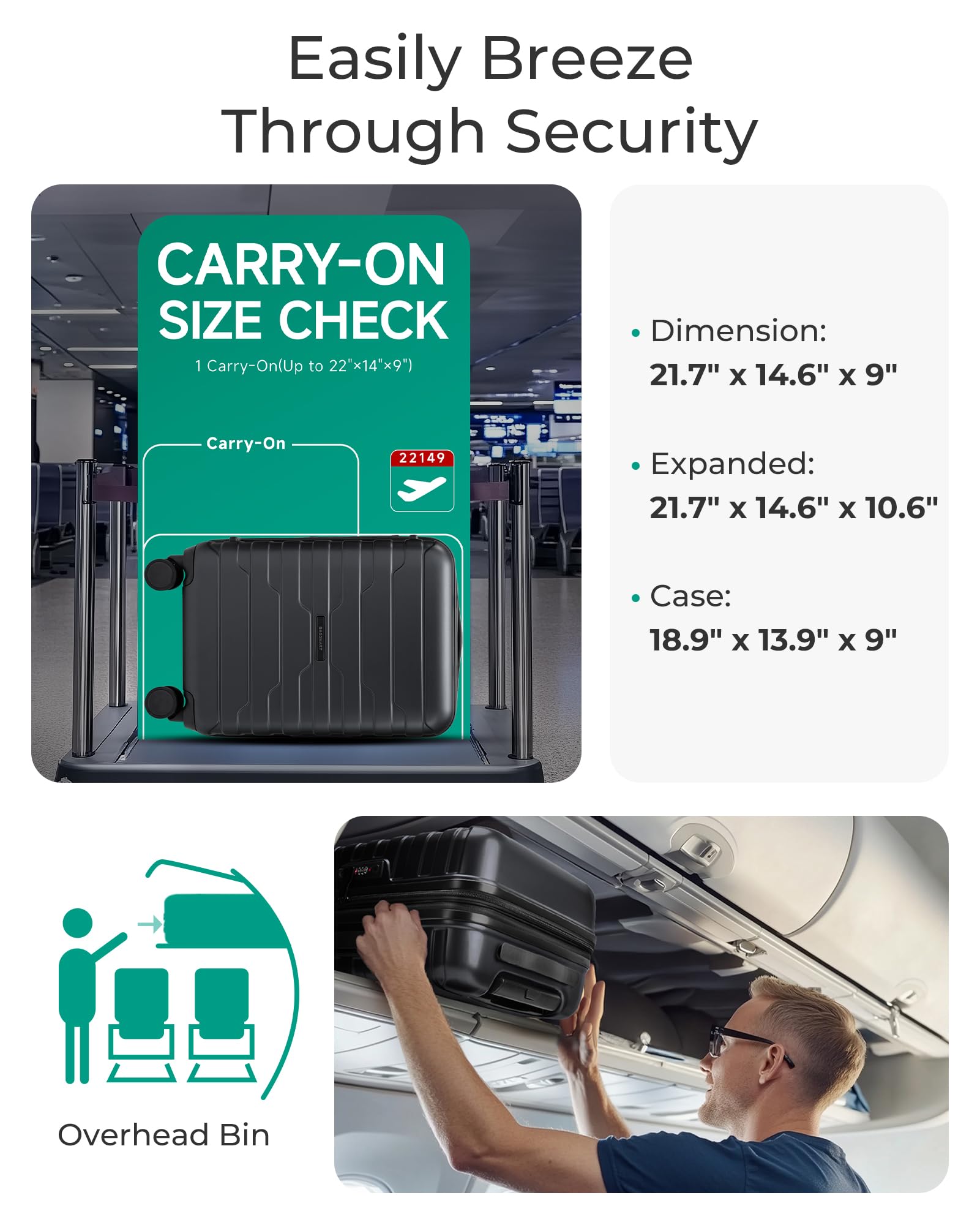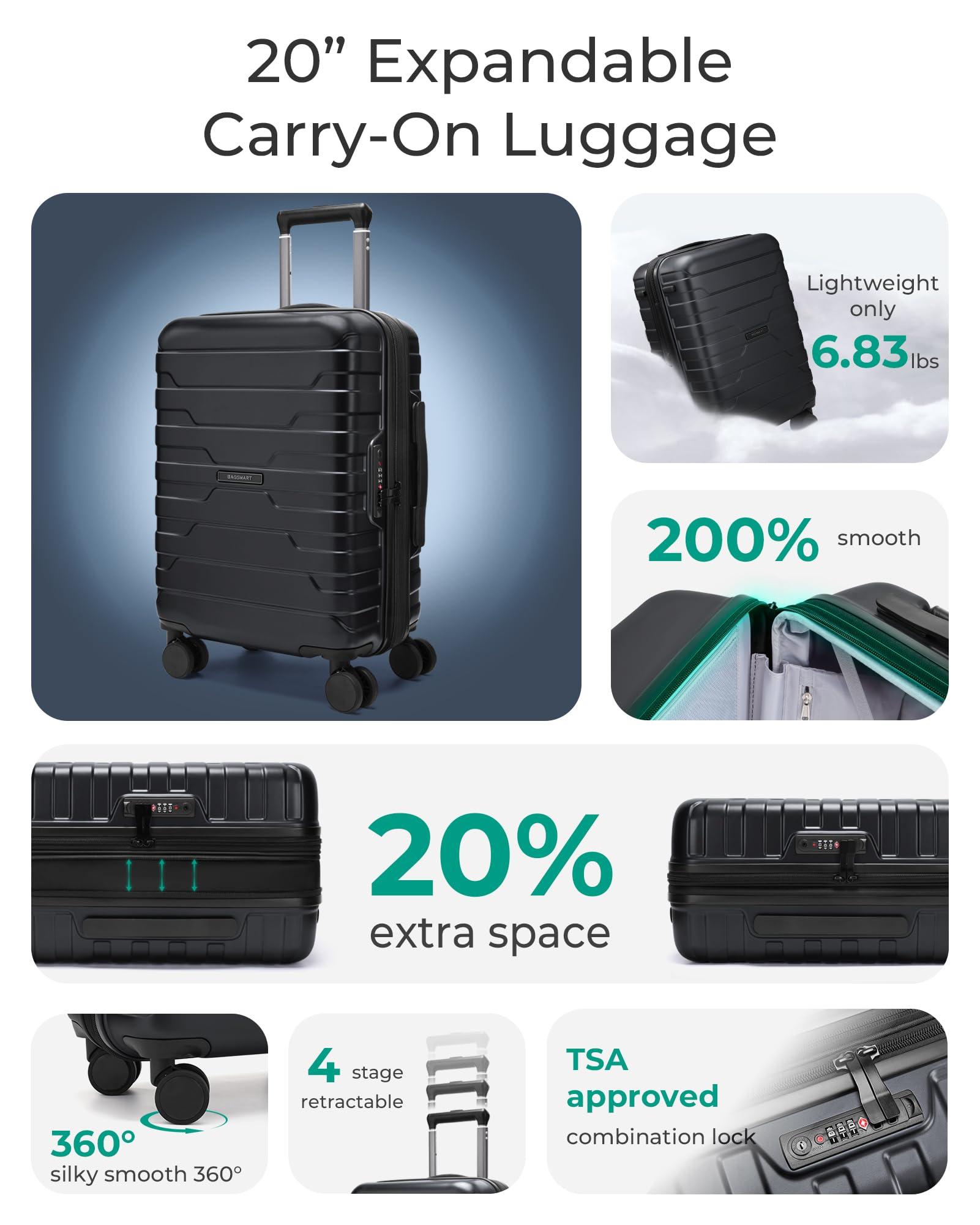 Premium Service And Warranty: BAGSMART will back each piece of tsa approved carry on luggage with a lifetime manufacturer's warranty. Before shipment, hard sided luggage with spinner wheels undergoes thousands of rigorous tests to ensure that our luggage meets strict standards and can withstand any journey. If there is any quality problem, please feel free to contact us. Professional and patient customer service will reply to your satisfaction in time