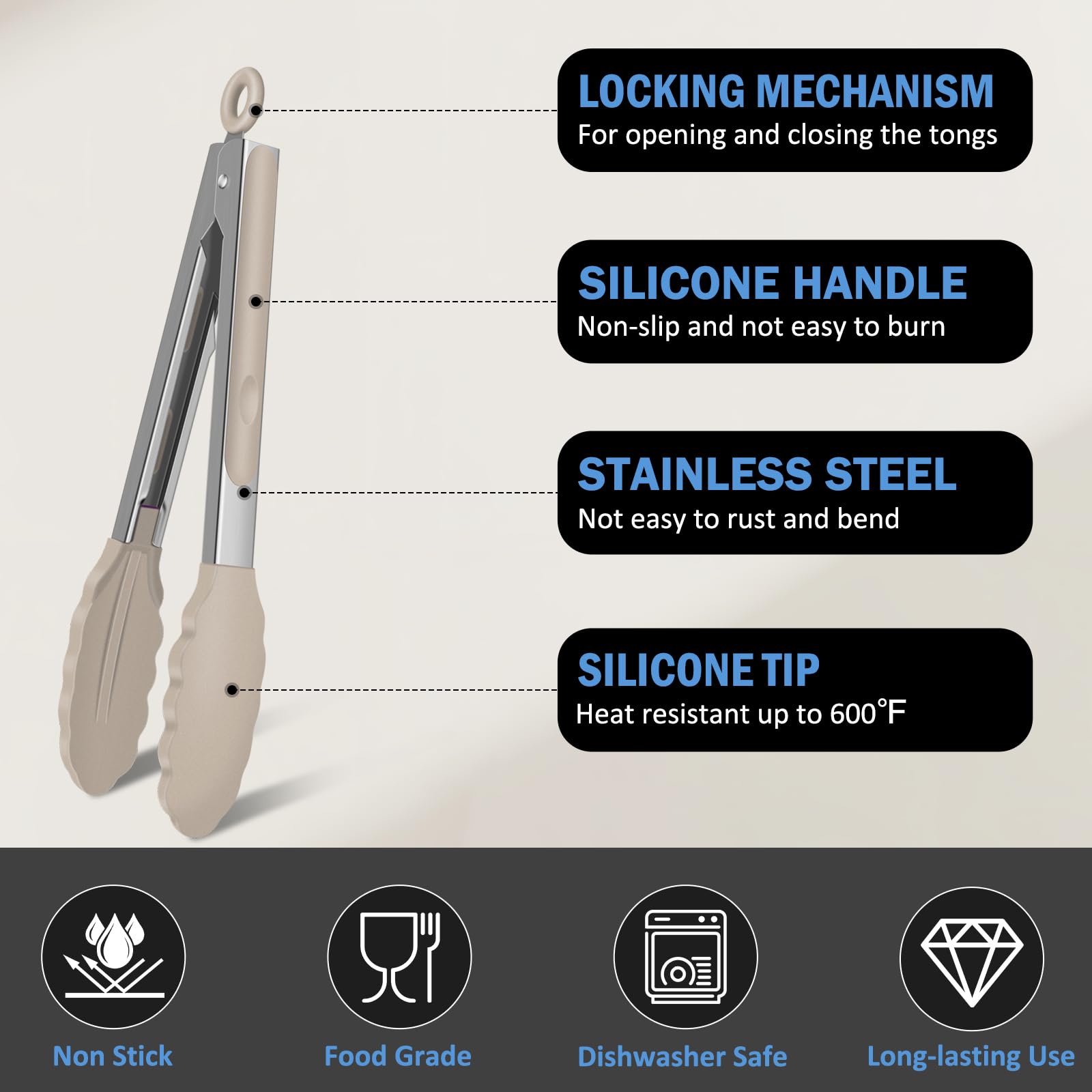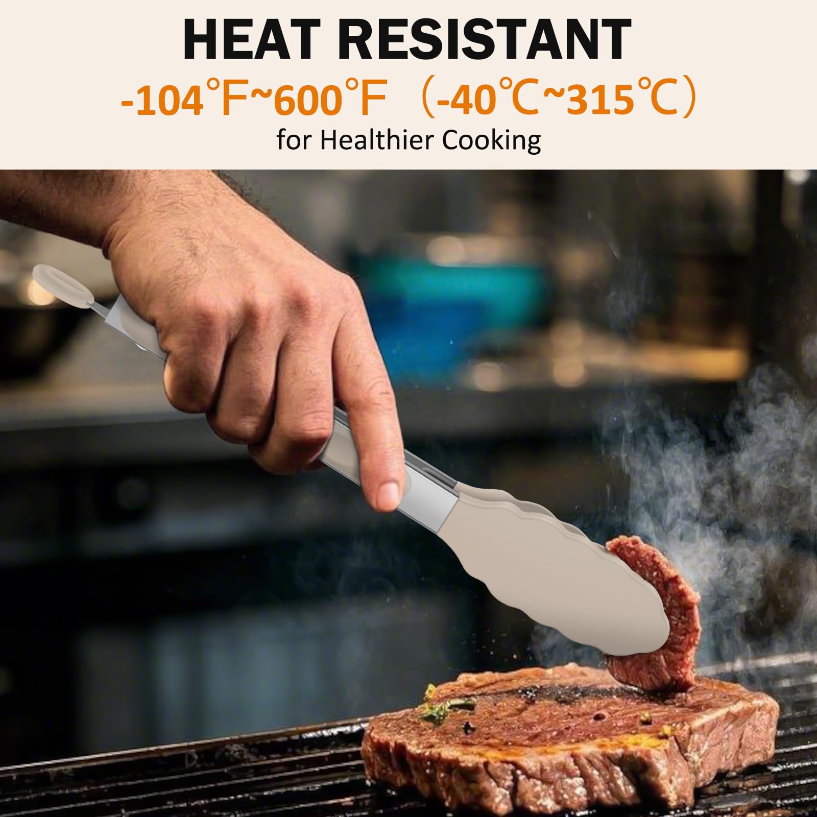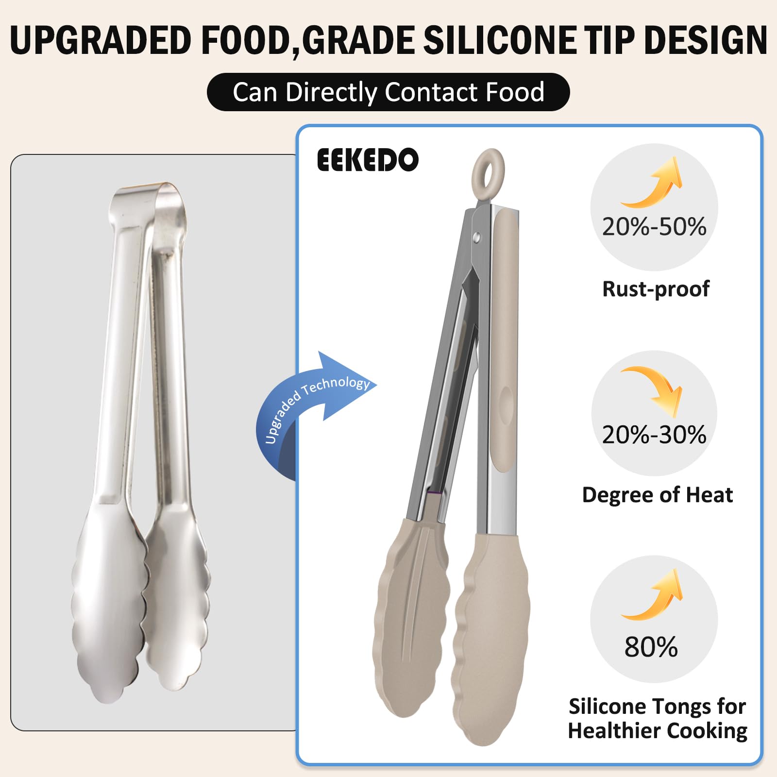 Premium Materials: EEKEDO kitchen tongs are constructed with food-grade stainless steel and silicone. Carbon free.Thickened stainless steel makes it stronger and more durable.It is convenient and safe to your cooking.