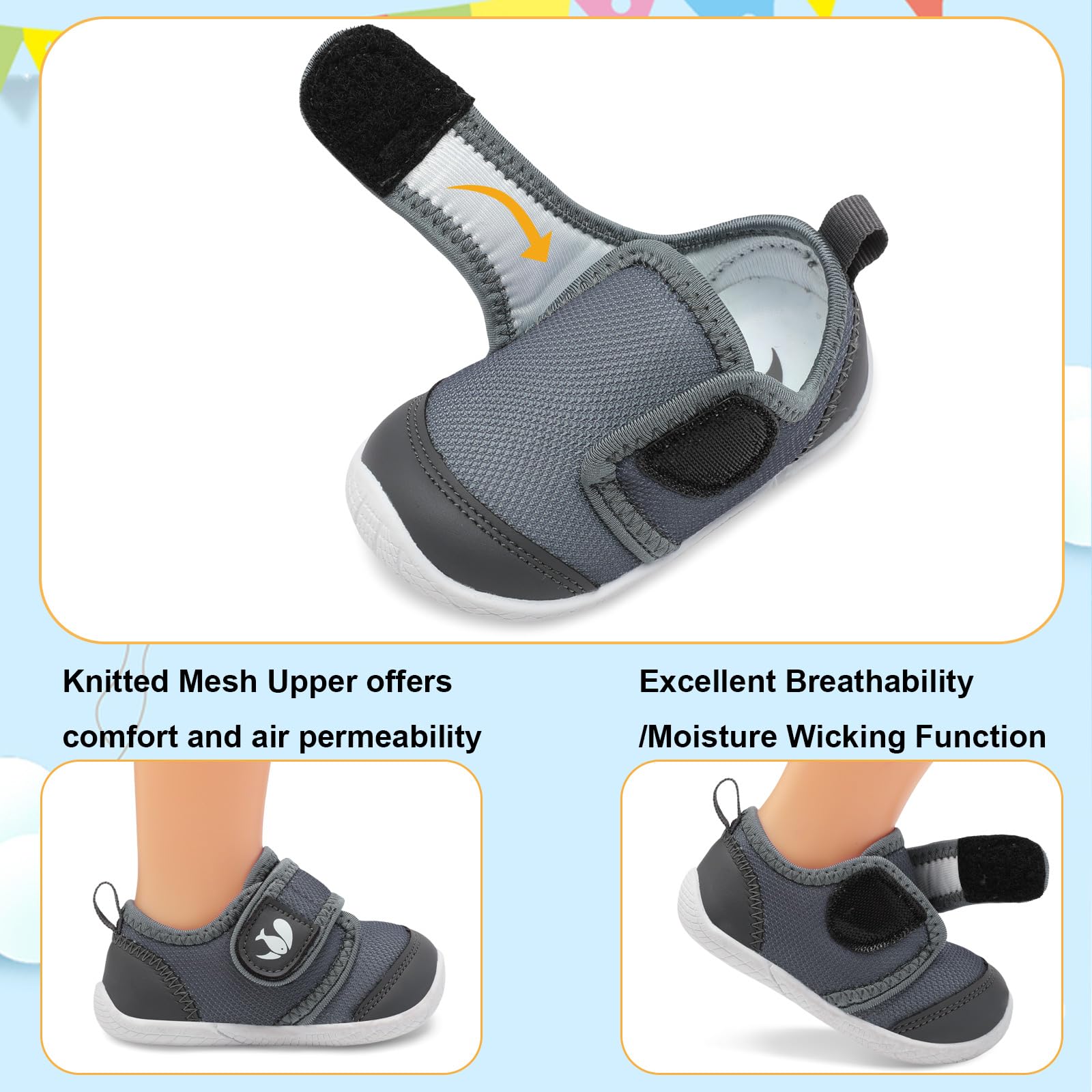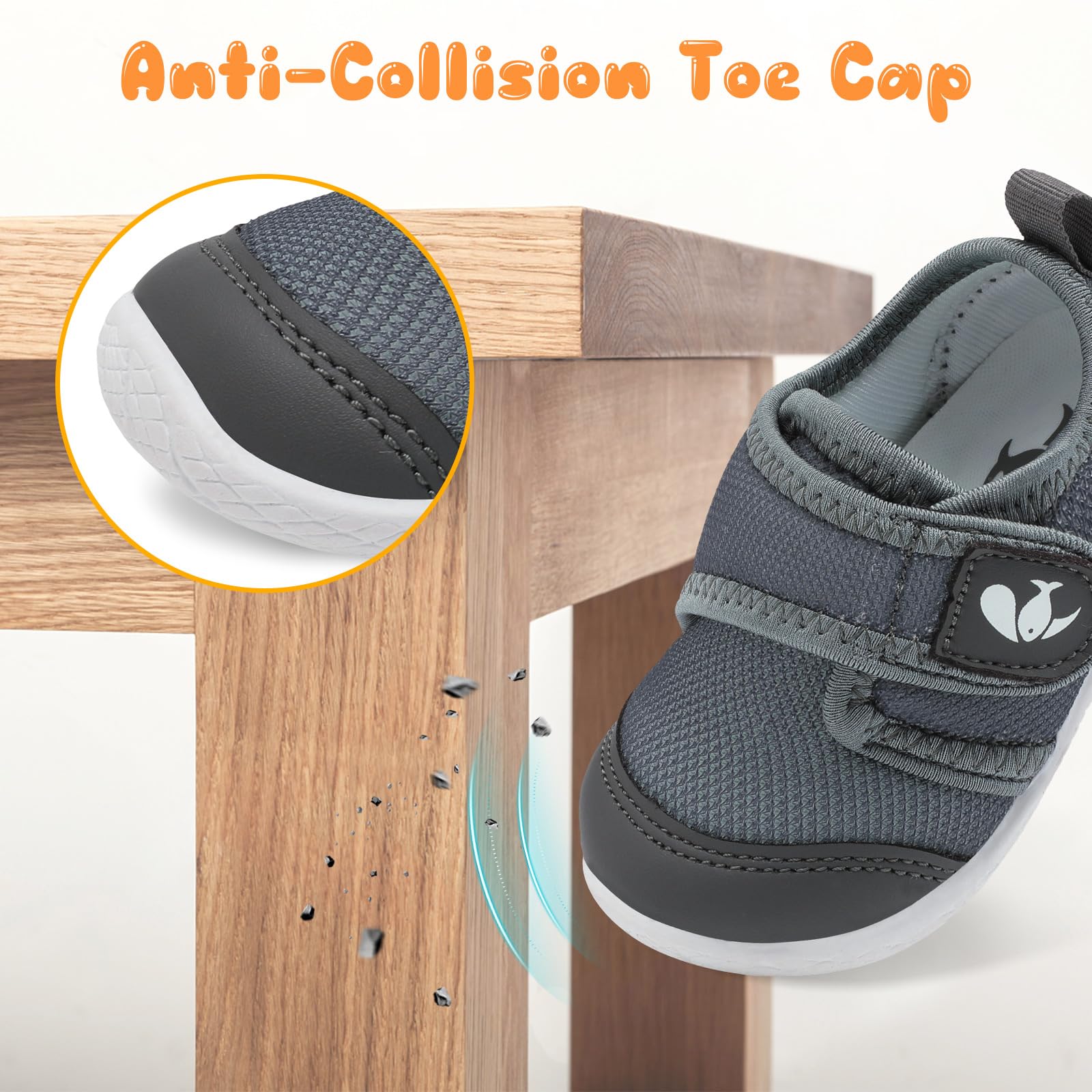 Walking Confidently: Round toe boxes allow natural splaying of toes for balanced landing and maximum comfort, your baby will walk very confident with them.