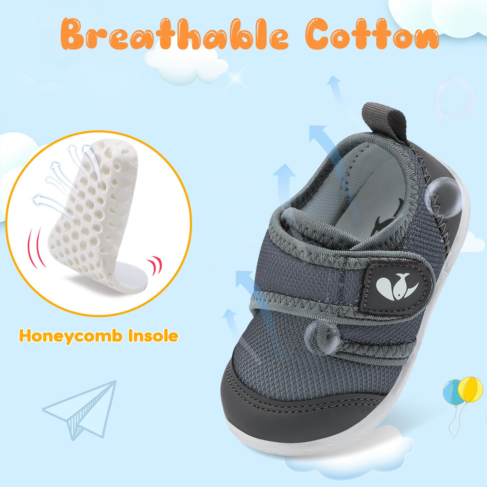 Upper: Premium quality cotton upper, has excellent breathability, moisture wicking function, and keep baby's feet dry and odorless. Super Soft, Breathable and Comfortable fit all the year.
