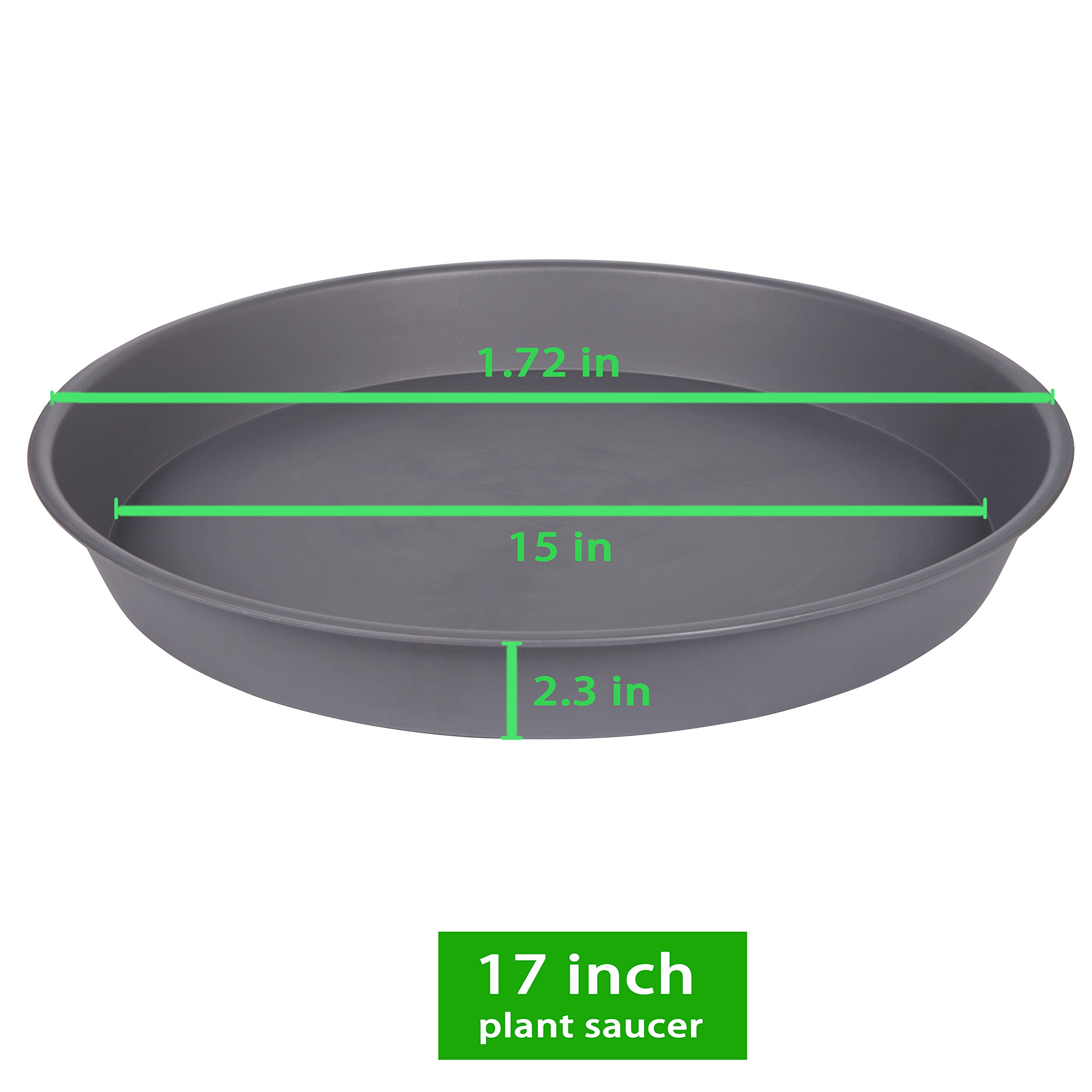 【PlANT SAUCER USE】These 16 17 inch plant saucers catches water overflow from flower pots and keeps your furniture and stains free. No fear of leakage from flower pots. Dark brown appearance will not affect any color matching with planters, plant water saucers and plant drip tray for indoors outdoor.