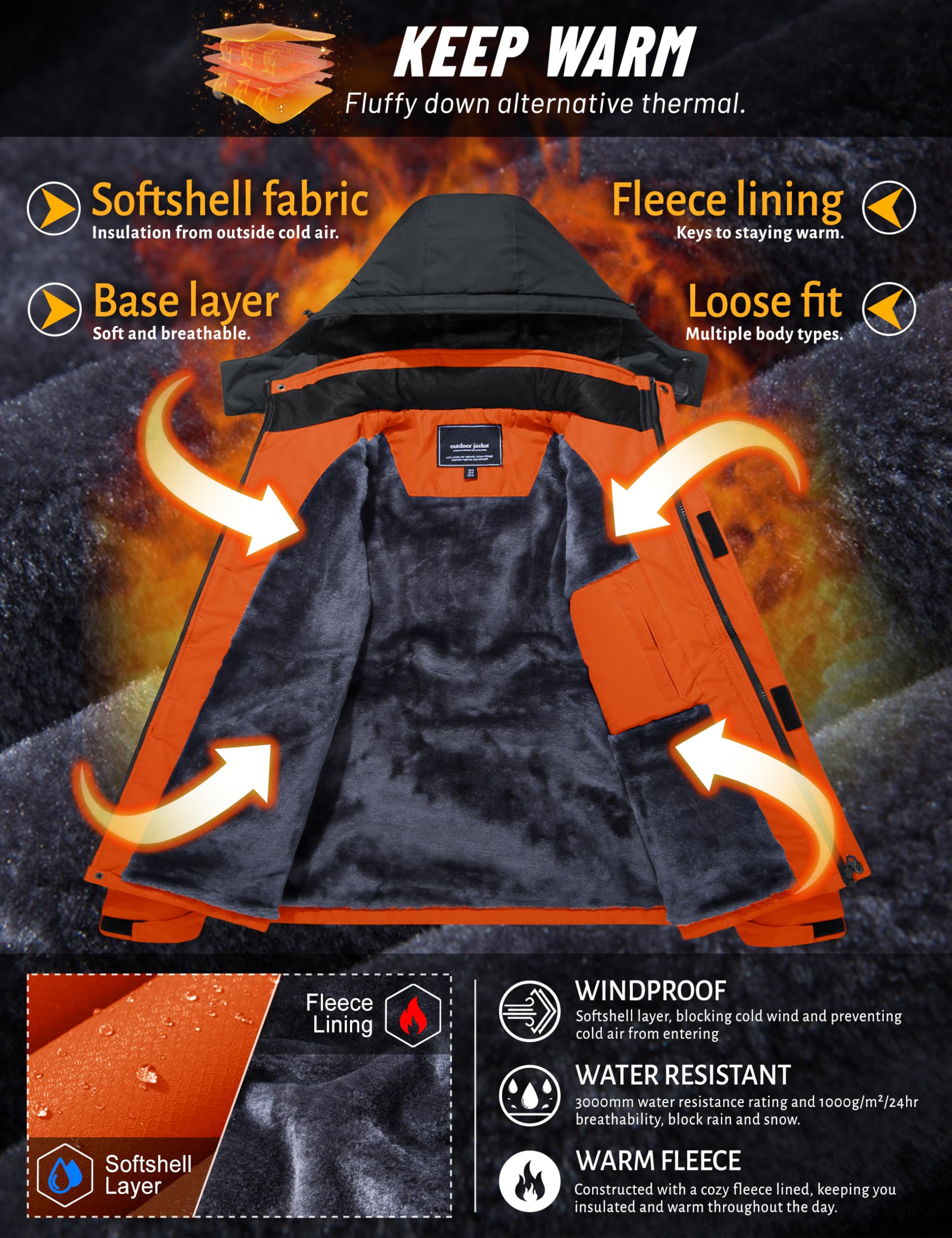 Design: Hooded Stitching Color; Fleece lining, warm, soft, comfortable