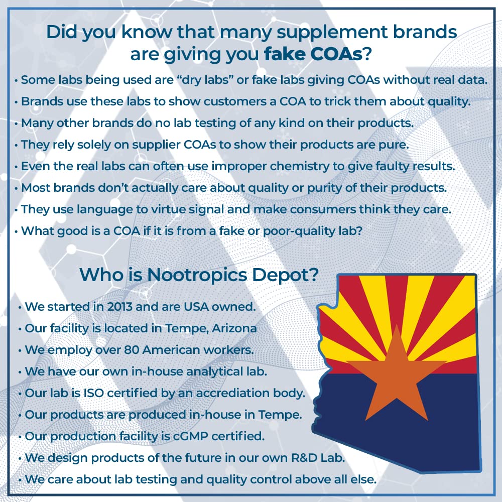 LAB TESTED AND VERIFIED - All Nootropics Depot products are thoroughly lab tested to ensure our customers are receiving only the highest quality ingredients at the optimal strength, potency and purity. We take pride in the amount of research put into every product by sourcing only the highest quality and innovative ingredients.