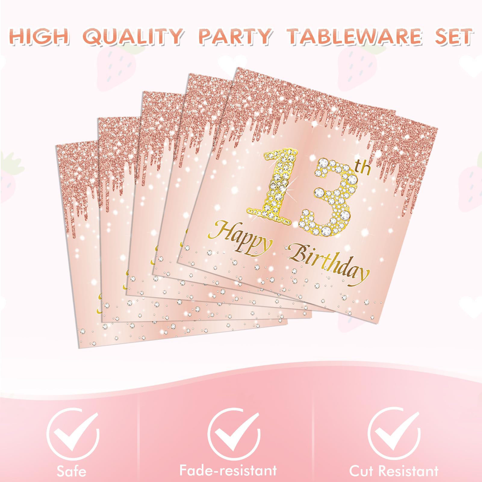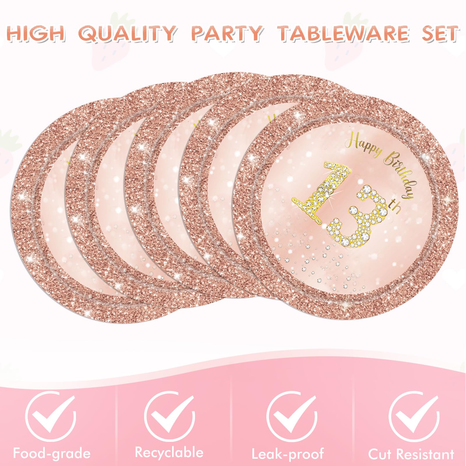 High-Quality Materials: All our 13th birthday decorations rose gold plates, napkins, tablecloths and birthday decorations are made of high-quality food-grade materials, which are safe and environmentally friendly, no odor. The pattern is exquisite and does not fade, the best choice for your 13th birthday!