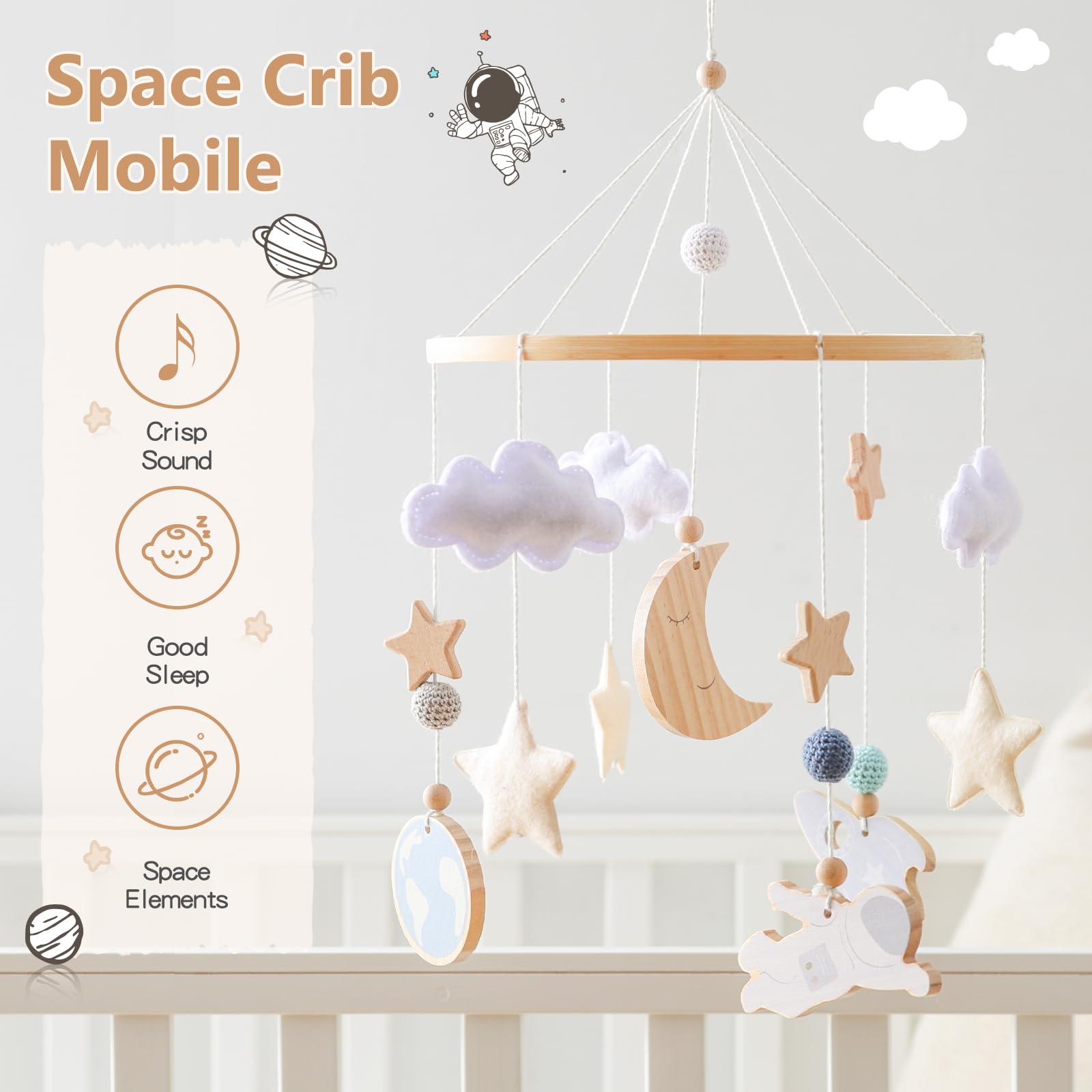 🚀NATURAL AND ECO-FRIENDLY MATERIALS: This beautiful crib mobile is made of the finest quality eco-friendly felt and wood, and filled with soft hypoallergenic natural materials, each piece is carefully sewn with exquisite details, and is adjustable! Simply move them up and down to get the position you want