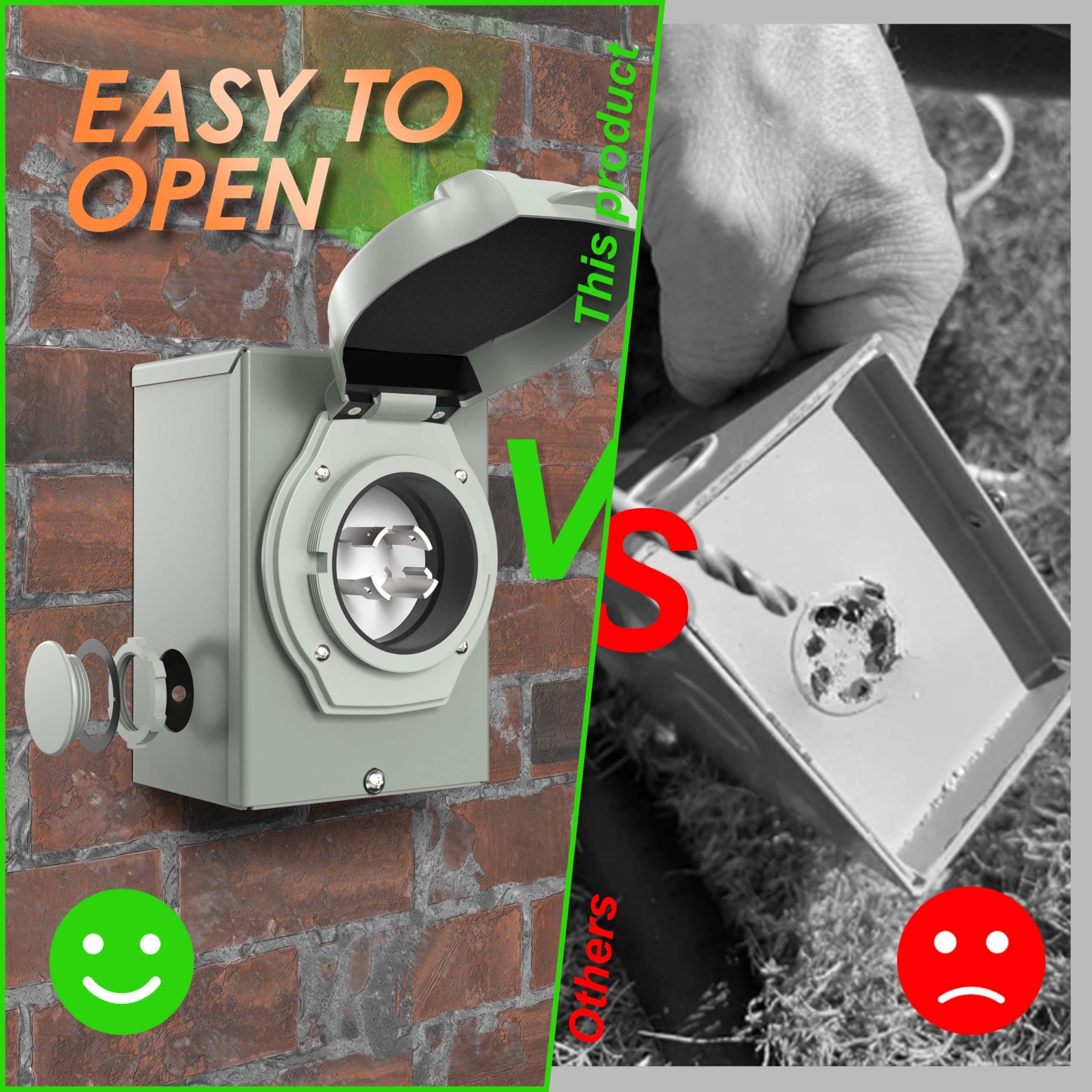 Pre Drilled: The 4 knockouts were replaced by removable rubber plugs made it easy to remove directly without damaging the power inlet box. No more need for a special tool (such as a driller/knockout punch) to drill. Easy to Open
