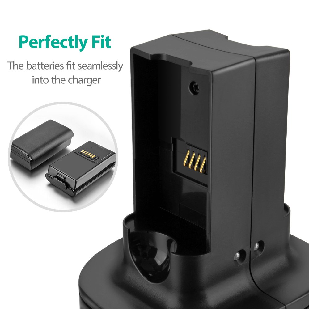 Xbox 360 dual rechargeable battery kit keeps you at full power reaching your winning point, comes with TWO reliable rechargeable batteries made of high quality plastic as well as dual battery charging station in compact size. You may carry this charging kit to your friends to enjoy long lasting game play. The charging kit comes with over-charge protection and secure circuit setting. It is light-weight, portable and good for you when you are at home, working or even traveling. Easy to use, simply plug the charging kit and power up your batteries. The whole package includes TWO rechargeable batteries for Xbox 360 wireless controller and a dual battery charger. Rechargeable batteries are economical and environmental friendly that could be repeatedly used. Package Content: 1x Dual Charging Station Dock for Xbox 360 1x Cable 2x Batteries