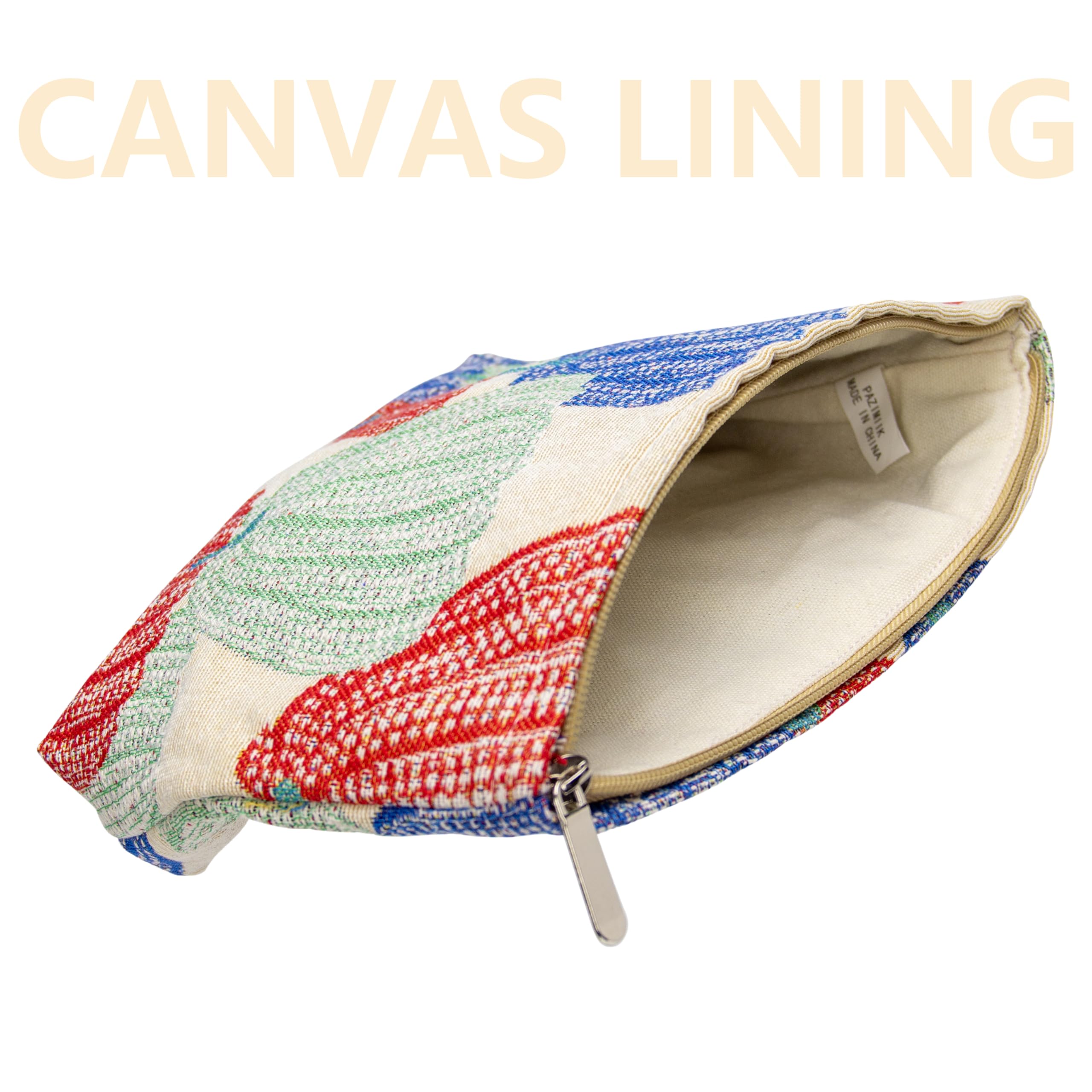 Material: Made of super soft water-repellent fabric with canvas lining,easy to clean.It will not lose color after the wash.The smooth zipper with a shiny metal pull keep your items secure and organized inside.