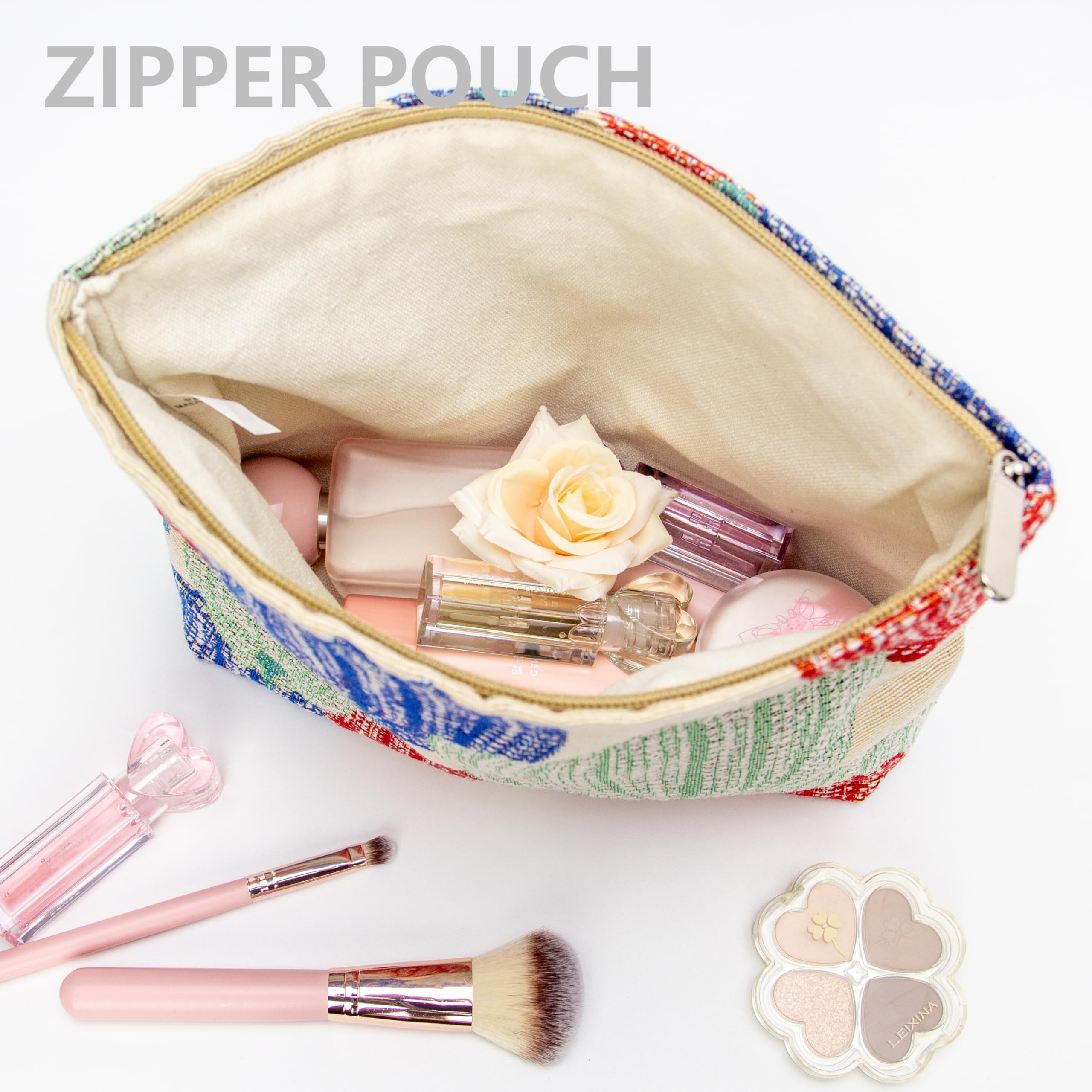 Multi-Purpose:Use this sturdy pouch to easily pack and carry makeup,jewelry,beauty items,brushes,pencils,small electronic accessories,toiletries,essential oils,medcine,tools or other travel essentials.This cosmetic pouch is the perfect balance between funchtion and style.