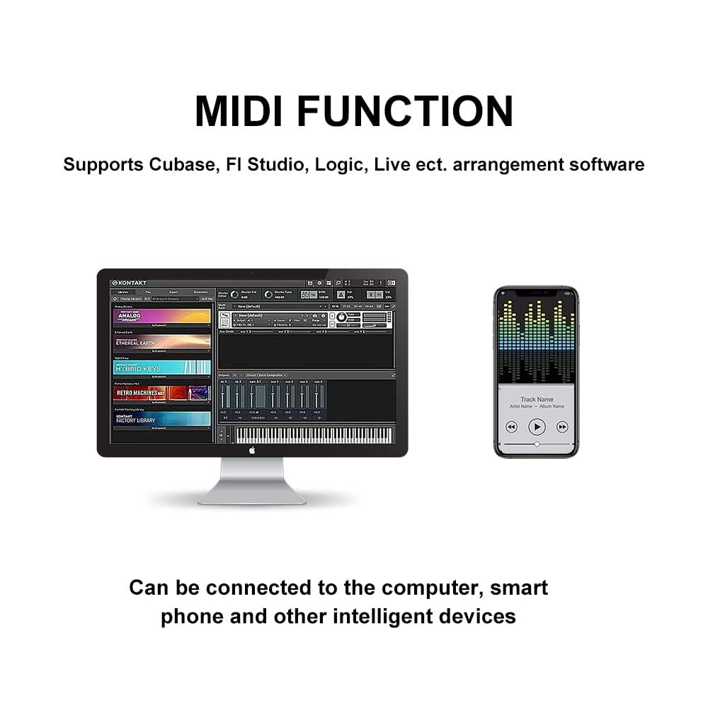 【MIDI TERMINAL】- MIDI function allows you to connect computer, smart phone and other intelligent devices to compose music. You can use the micro USB cable to connect the computer, smart phone and other intelligent device.