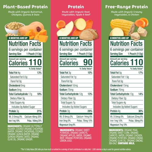 NUTRIENT-RICH: Offering a variety of wholesome ingredients, our baby food recipes include 3-4g of protein & more vegetable and meat-leading flavors than any other baby food brand