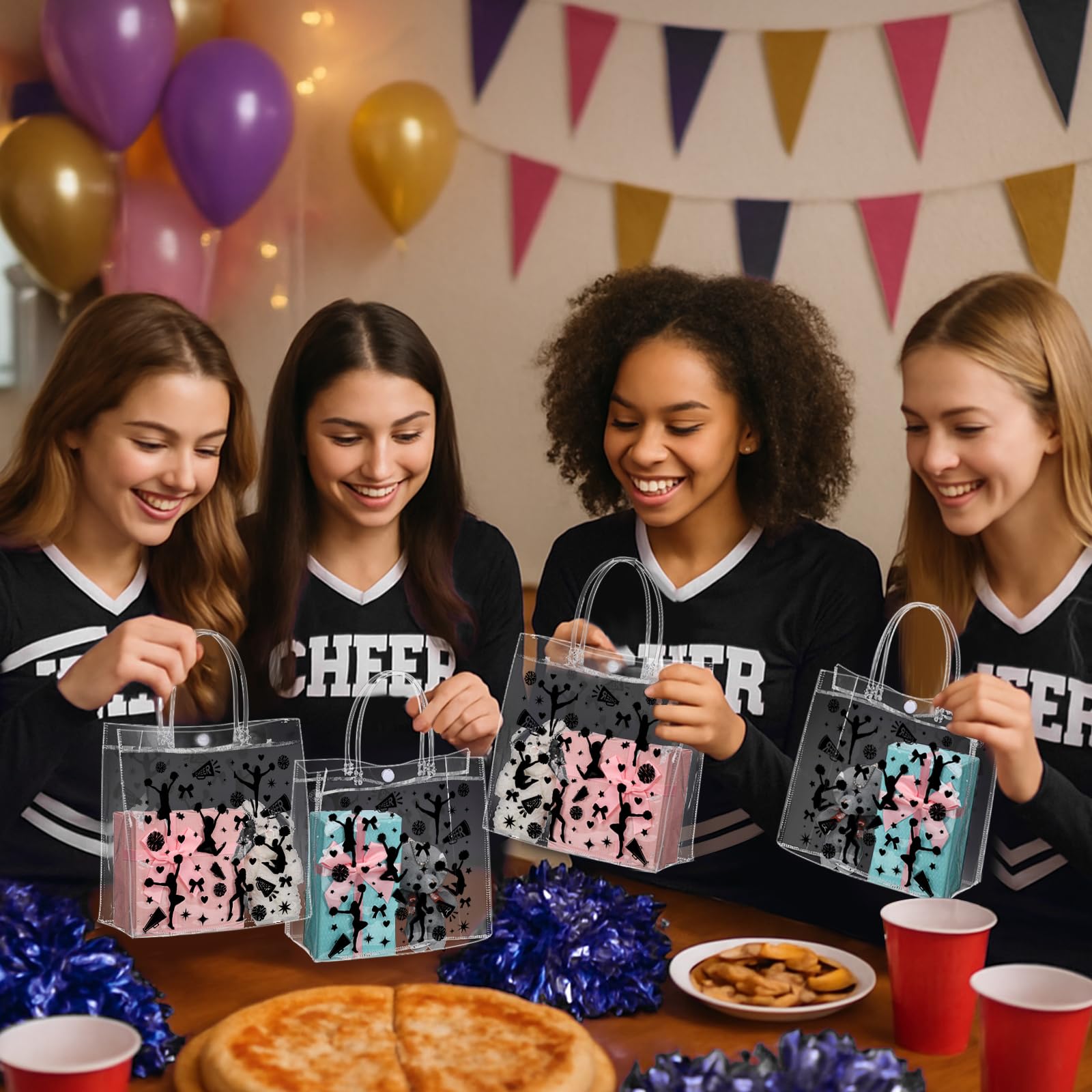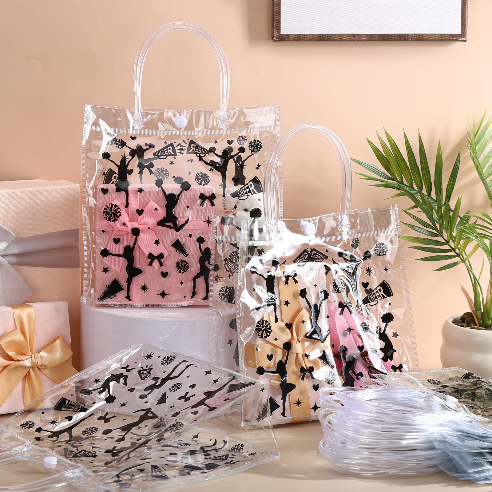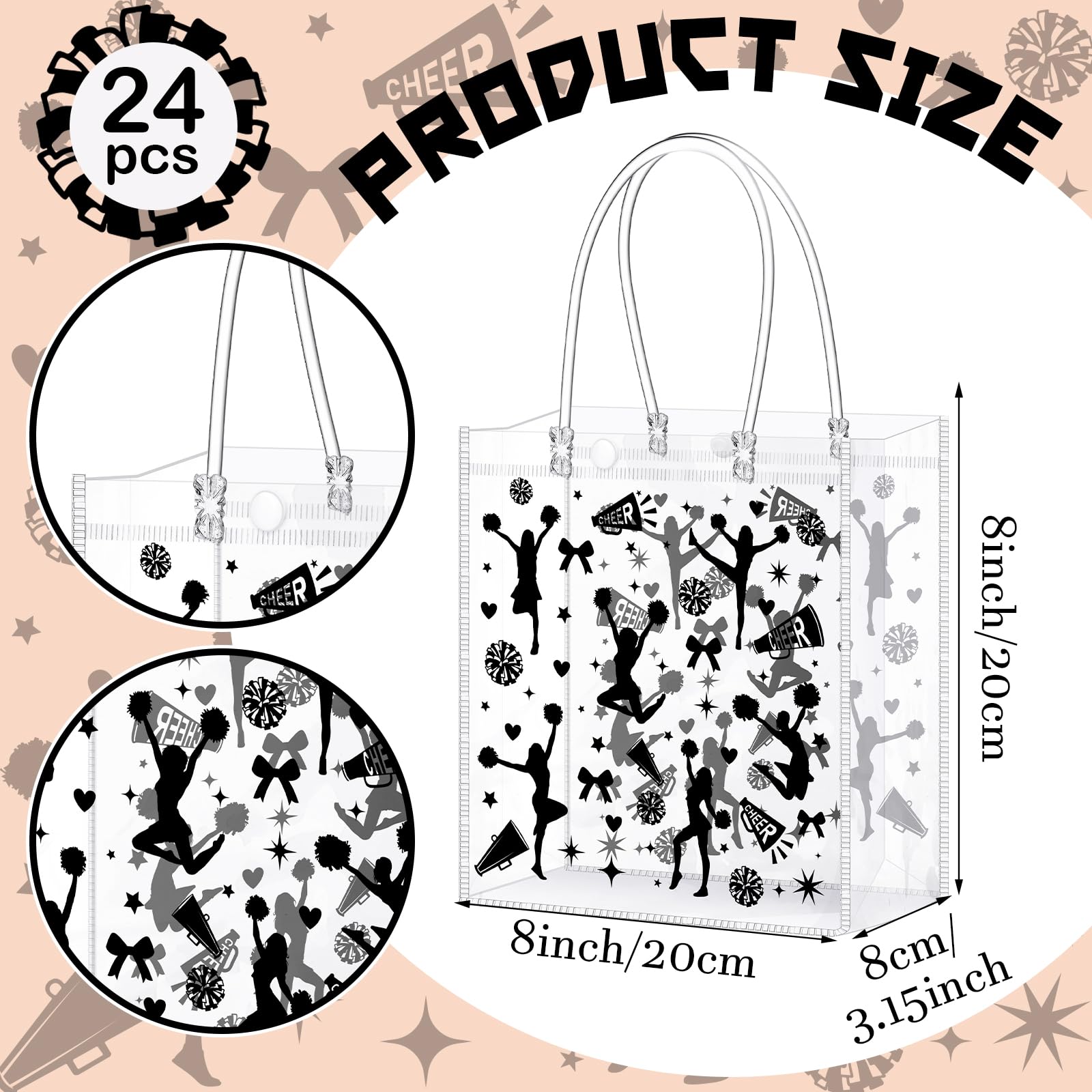 Abundant Quantity for Ample Needs: the package includes 24 cheerleading party clear goodie bags with handles, ensuring a generous supply to meet most party needs; Suitable for packaging gifts to share joy and strengthen relationships