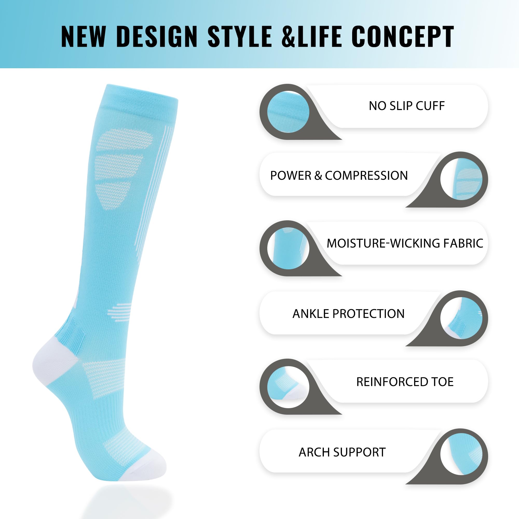 SOCKS FOR WOMEN: 20-30mmHg circulation compression socks are with moderate compression and are recommended by doctors and trainers. Nurse compression socks create the highest support pressure at the ankle and gradually decrease along the legs, making your legs more comfortable.