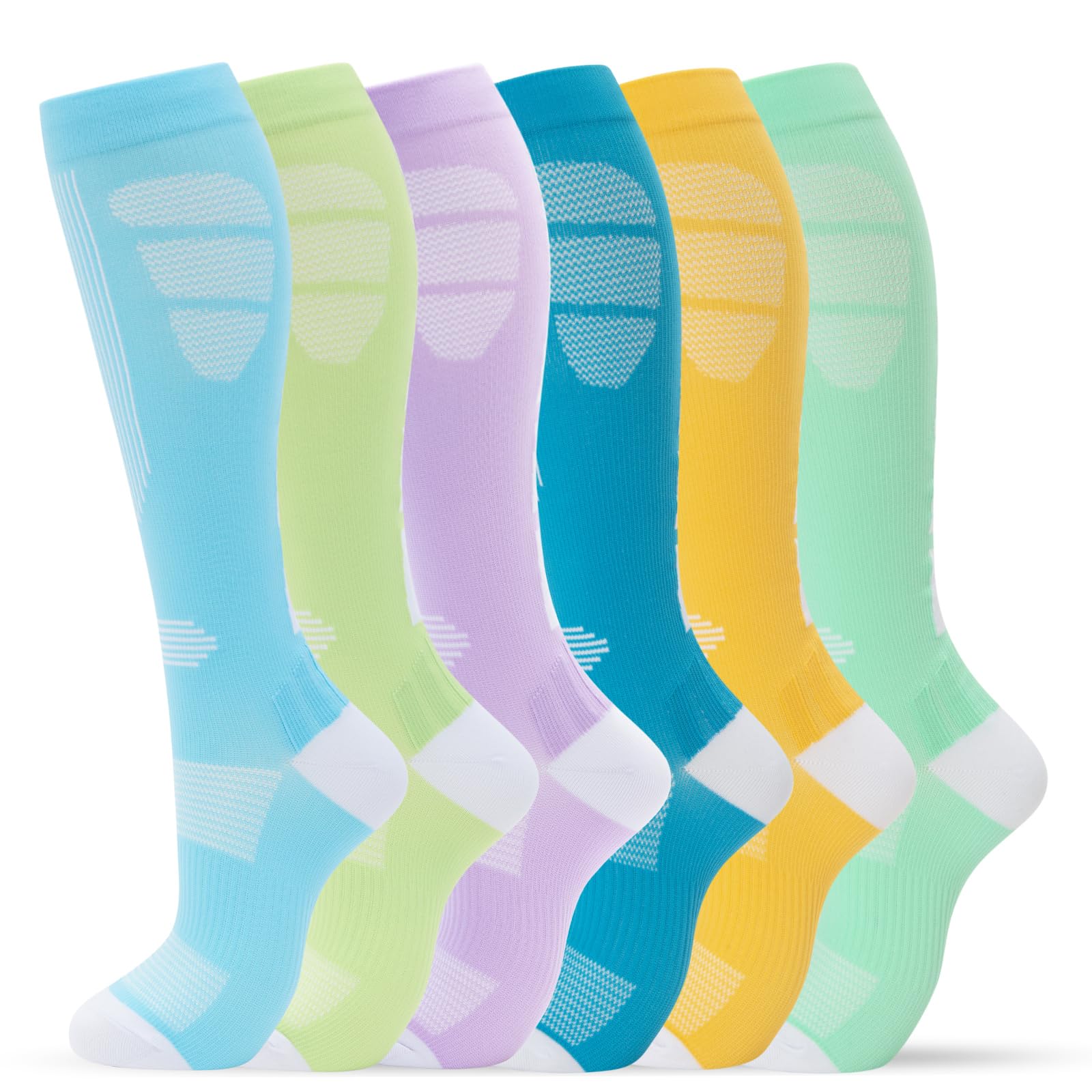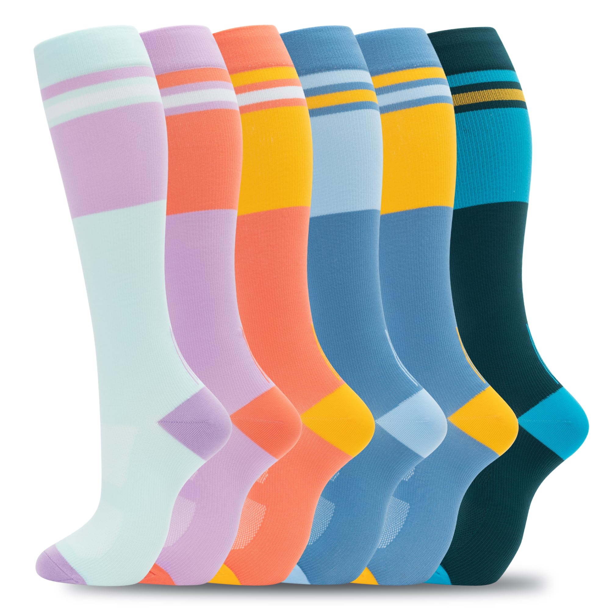 KNEE HIGH SOCKS Bored with terribly samey socks? Don’t worry. We prepare a wide variety of cute compression socks for women. The colorful compression socks are carefully designed and the pattern design is very distinctive, The toe and heel portions are reinforced for added support and comfort. Just pick your favorite one from these fun compression socks to show your personality and style