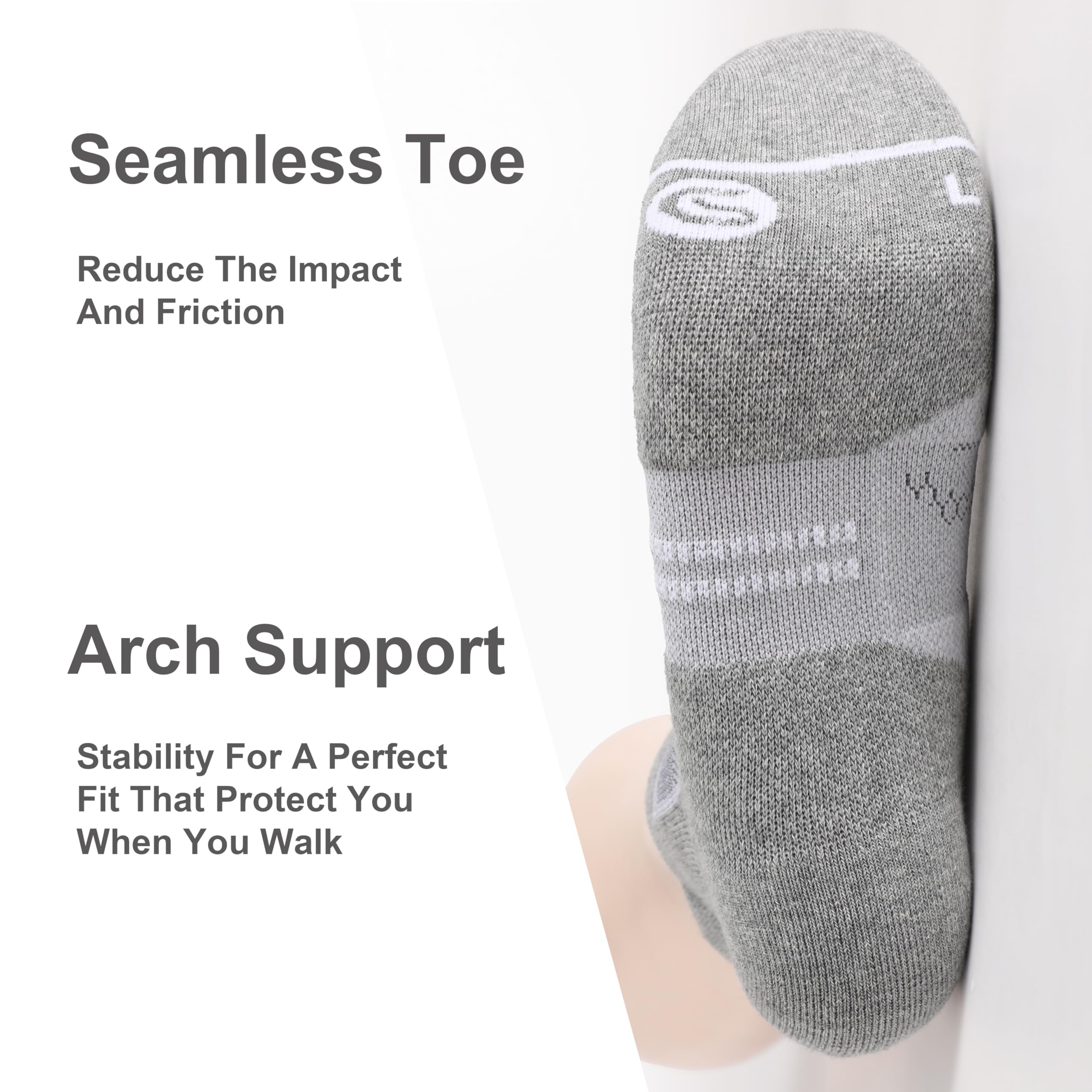 Friction & Shock Protection: Our mens ankle socks use the seamless toe design, cushion on the toe and in bottom with thicker yarn to prevent blister.The thicker design reduces foot friction and relieves foot fatigue.