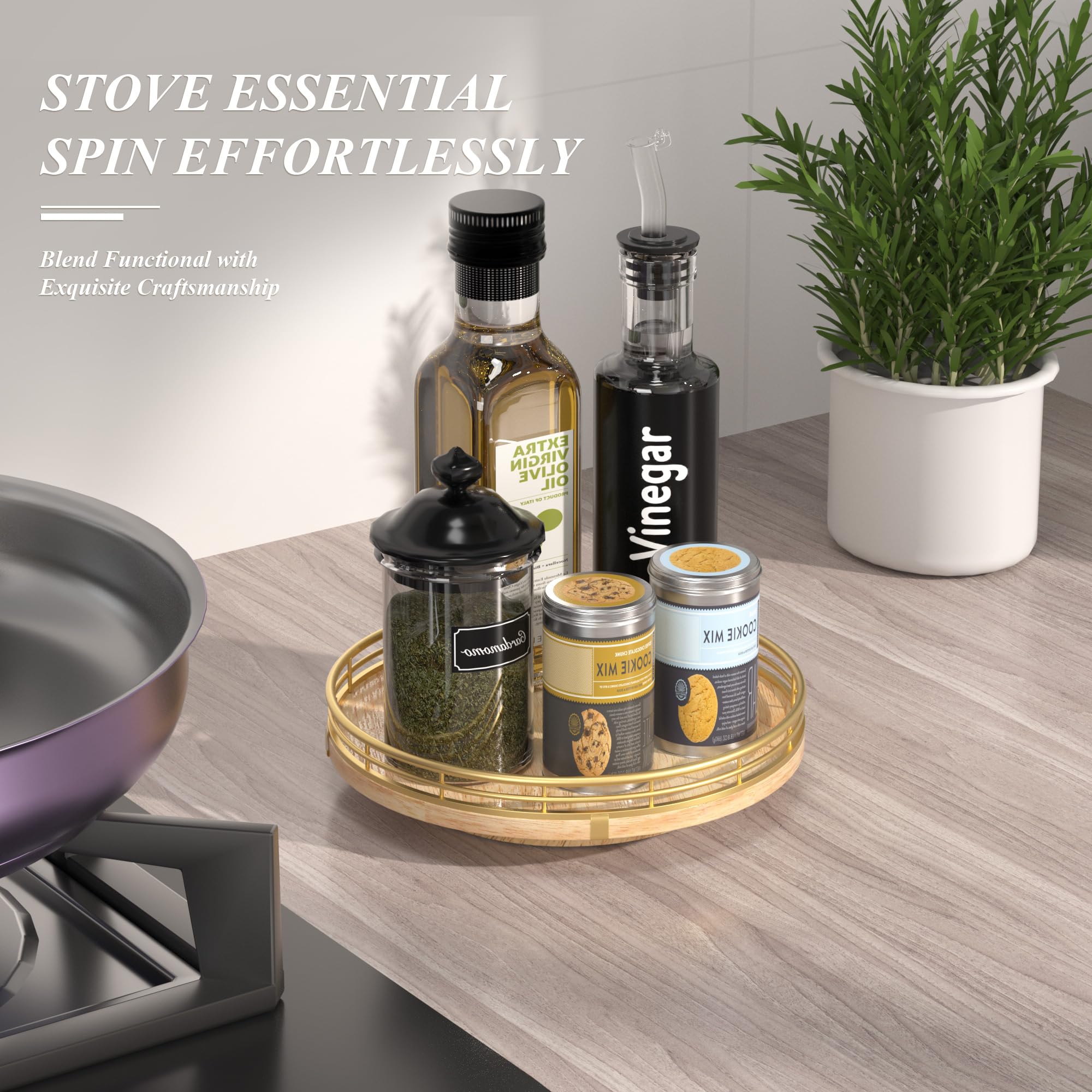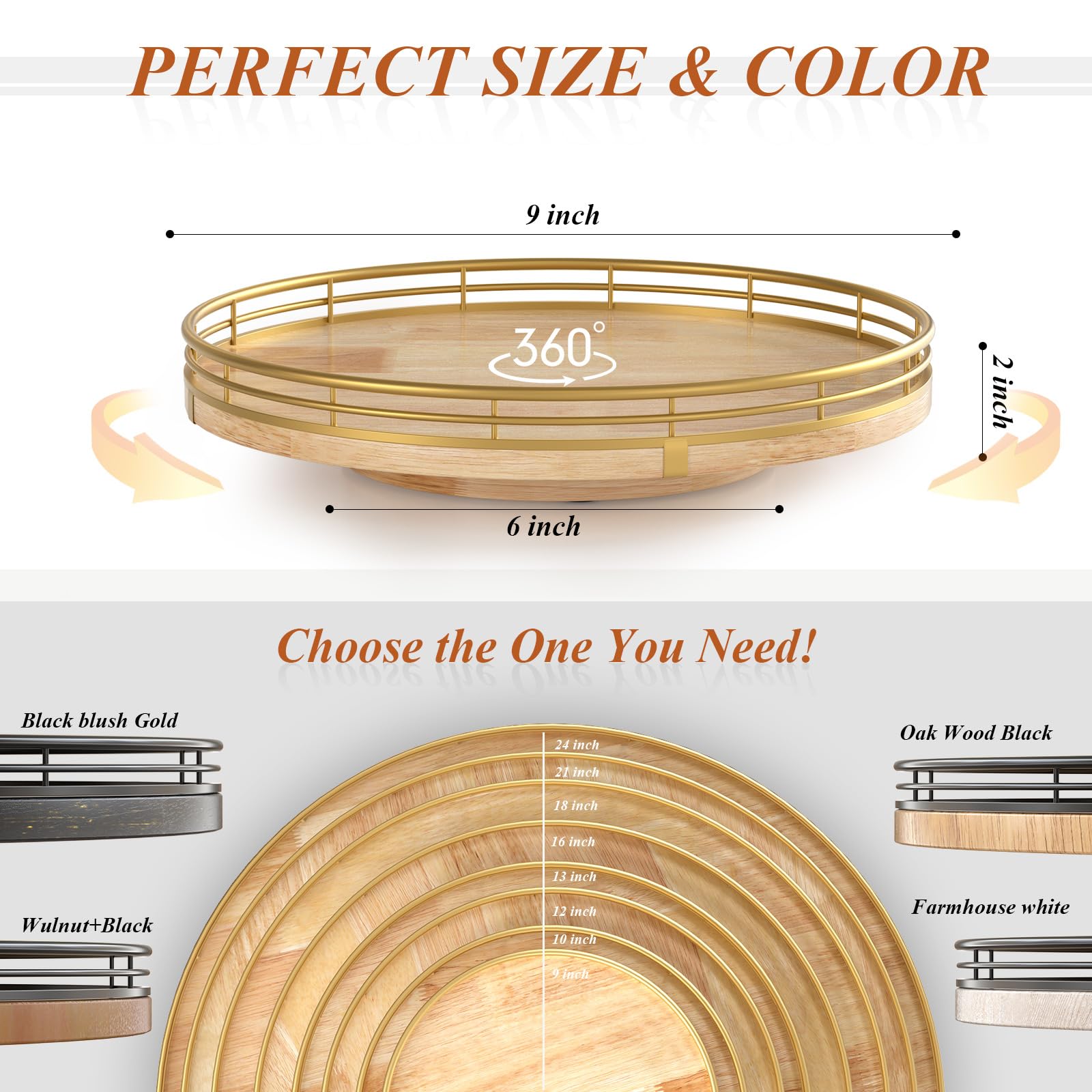 𝐔𝐏𝐃𝐀𝐓𝐄 πƒπ„π’πˆπ†π:The base is large enough to hold a lot and heavy objects and successfully rotate. It is made of lovely oak wood that is strong with a sturdy metal rack to secure the items on the turntable. The turntable smoothly revolves all around making the items an easy reach. There is also included anti-slip pads on the bottom of the Lazy Susan, for extra surface protection.
