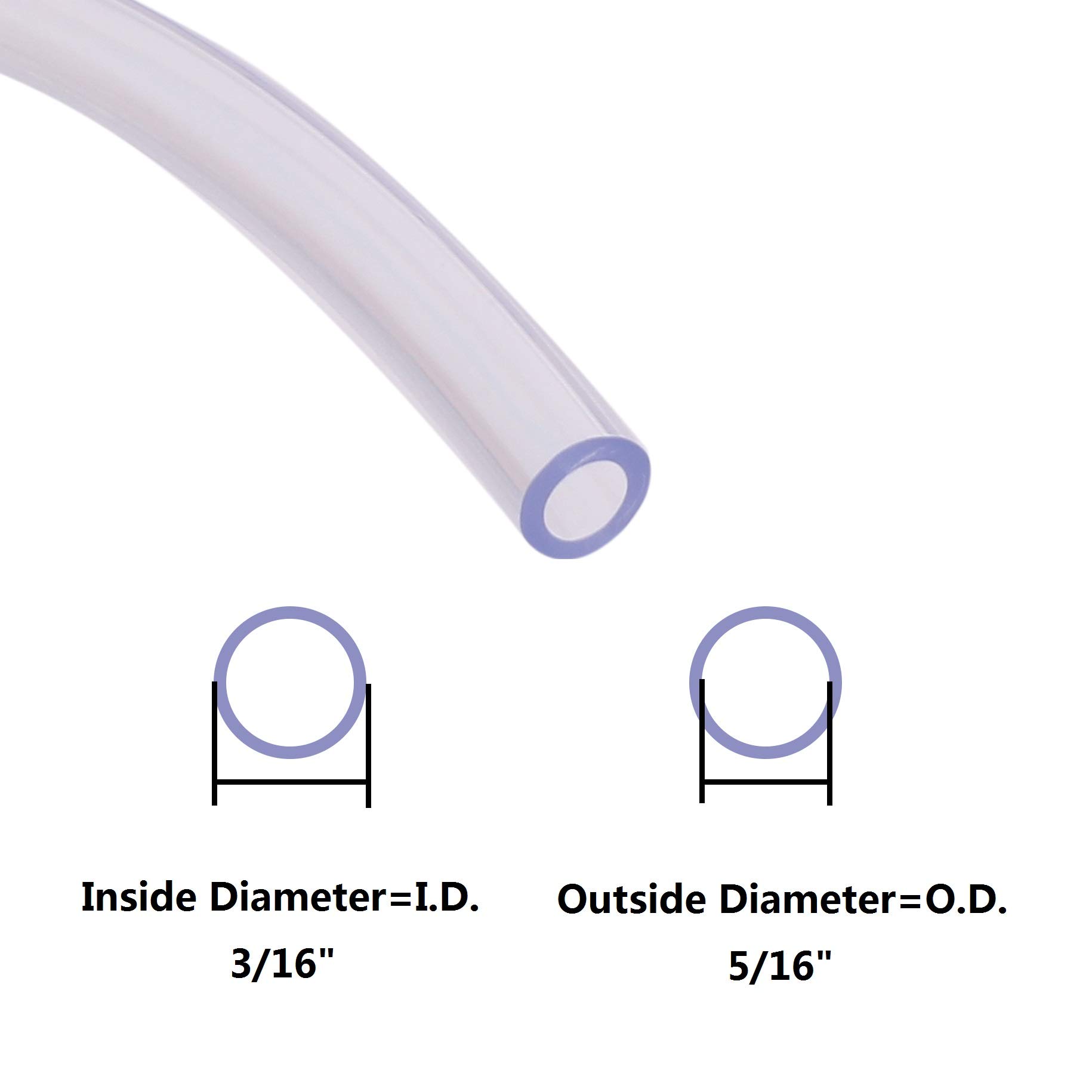 Size - Plastic PVC tubing, 3/16 inch ID X 5/16 inch OD Length:100 Feet(=1200 Inch=30.5M)