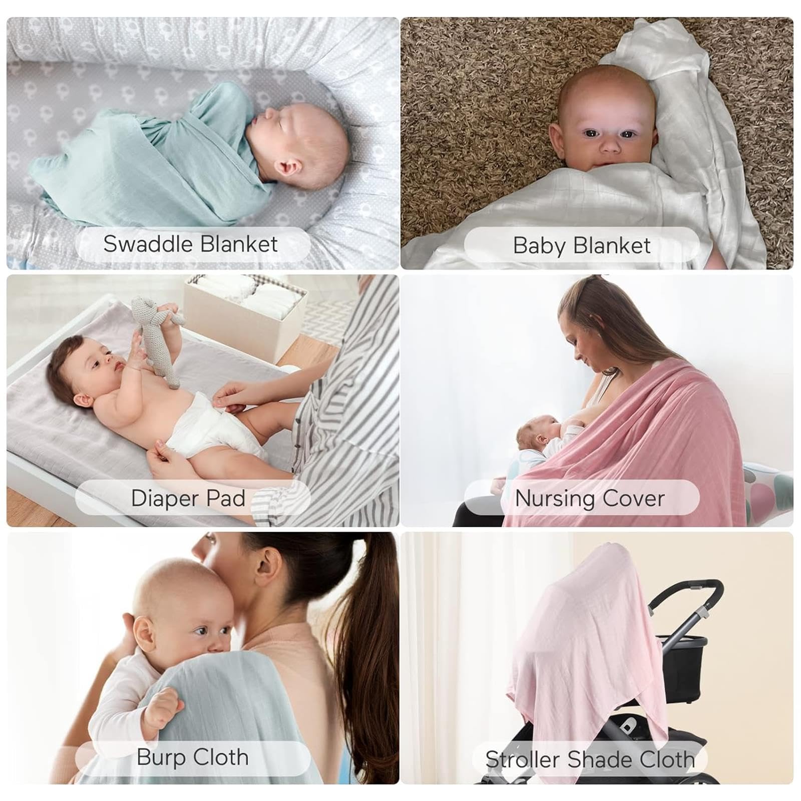 【Versatile and Practical】The way you use the baby swaddle blanket is entirely up to you, use it as receiving blanket, a diaper pad, baby blanket, burp cloth, stroller cover, nursing cover, shawl, mini crib sheet or even a scarf, car seat cover, play mat and so on. and don't worry that baby will outgrow so early that the baby blanket can't be used! Best baby shower gifts for new mothers and newborns.