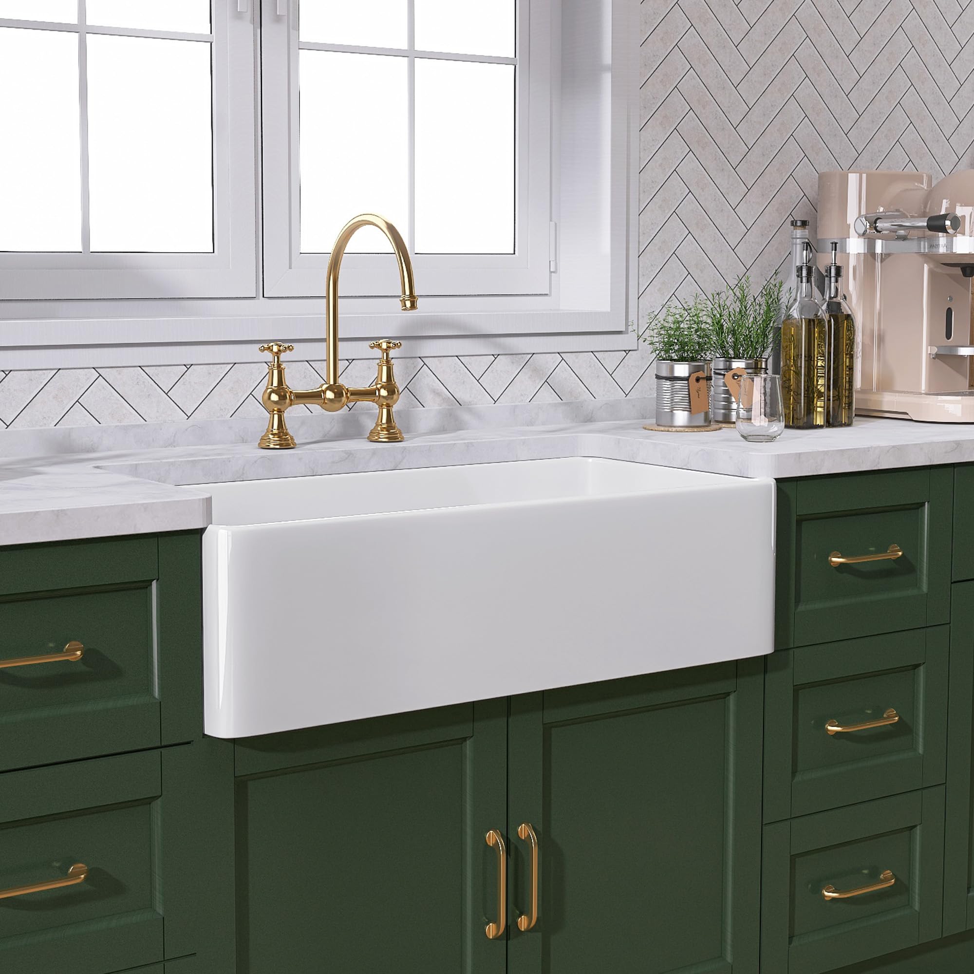 EASY MAINTAINCE MODERN KITCHEN SINK: The smooth and non-porous surface of the fireclay sink makes it easy to clean and maintain. Our white farmhouse sink is designed with a radius of R20 easy to clean corners, the ultra-smooth surface is easy to wipe. Just simply clean this fireclay kitchen sink with soapy water, food wastes, and liquid that will easily go off the surface of this undermount kitchen sink 33 inches. Keep the farmhouse-style kitchen sink single bowl look pristine. The elegant glossy white color makes this dish basin for the kitchen sink the perfect addition to your kitchen for a lasting impression.