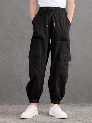 Design:Elastic waist design and drawstring,elastic ankle cuffs,Loose and easy to adjust.Cargo jogger pants perfect for active girls and won't have bound feeling.