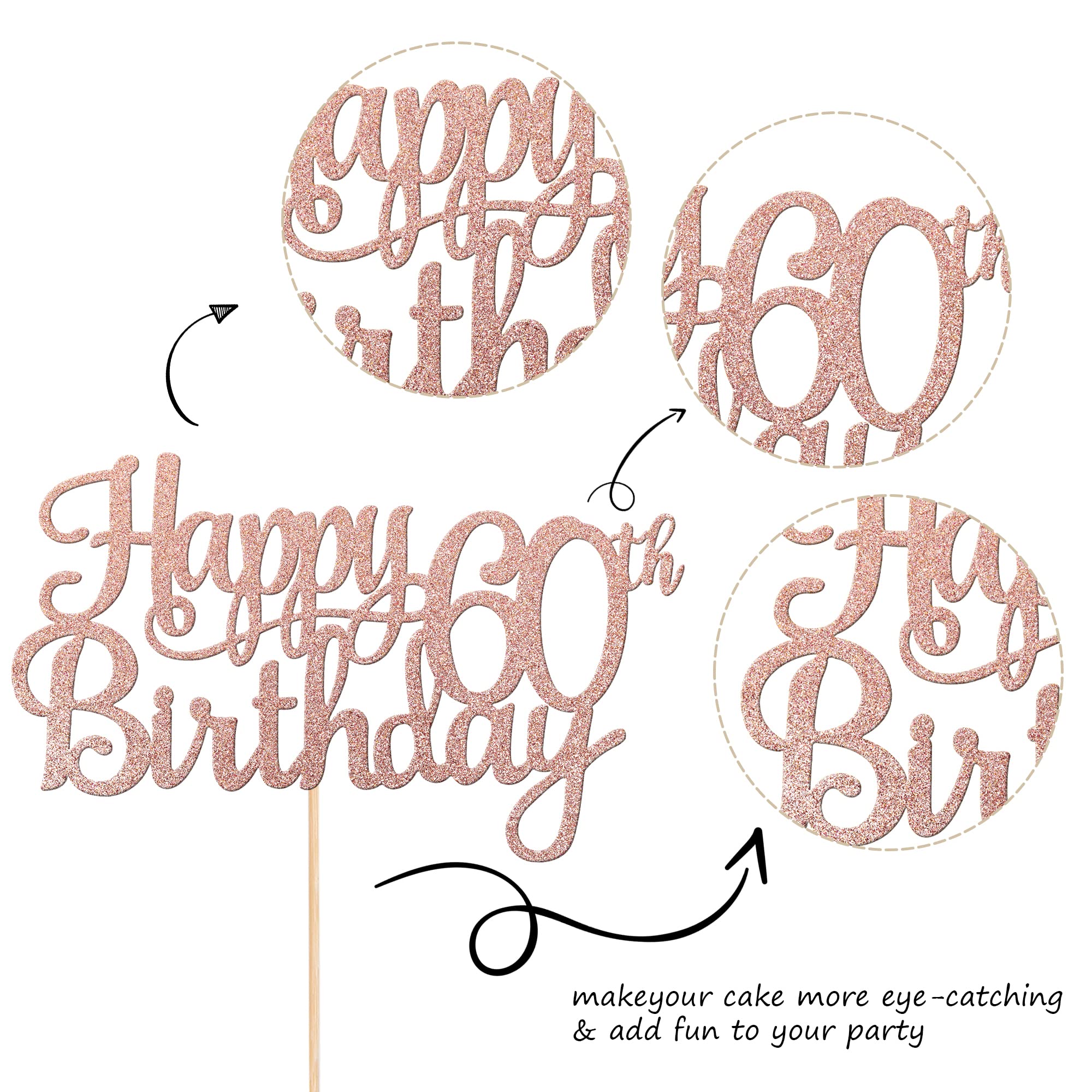 Happy 60th Birthday Theme Party Cake Decorations Supplies Perfect for happy 60th birthday theme party, cheers to 60 years birthday theme party cake decorations supplies. Pack of 1 pcs,1 pcs / card +opp bag The size is W 6.1 inch * H 7.9 inch / W 15.5 cm * H 20 cm ( with stick ) Made of high quality glitter paper card stock and food grade sticks,thick and sturdy. The cake topper is single glitter, the back is white, and they are intended for decoration only, please do not put them in oven or microwave. If the item you received has any defects, please contact us for refund.we will deal with it within 24 hours.