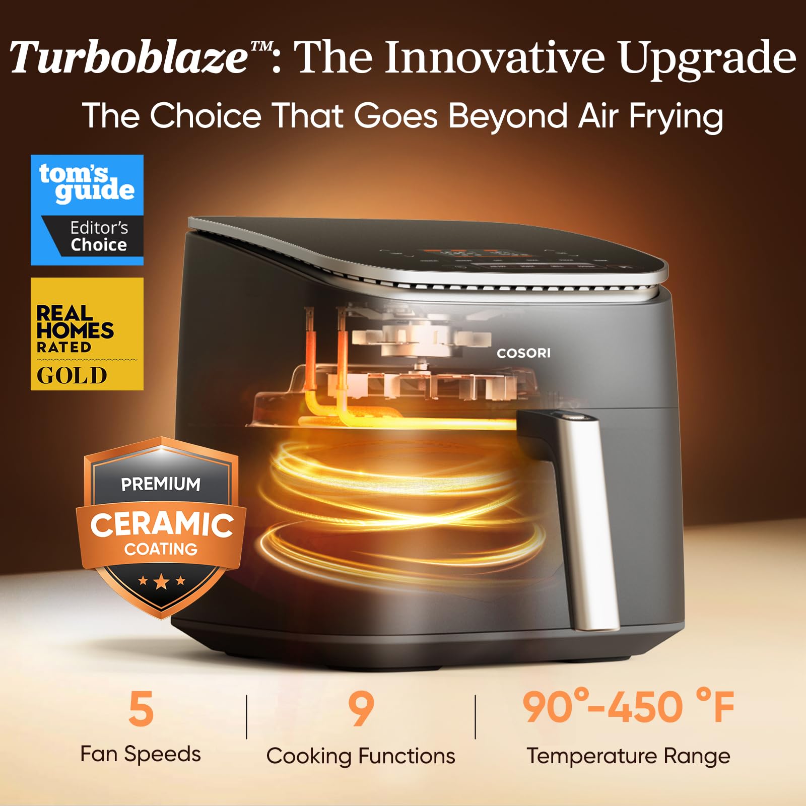 𝘼𝙞𝙧 𝙁𝙧𝙮𝙚𝙧 𝙐𝙥𝙜𝙧𝙖𝙙𝙚: Innovative TurboBlaze Technology delivers a powerful 3600 rpm fan speed and temperatures up to 450℉, achieving crispy, juicy results every time