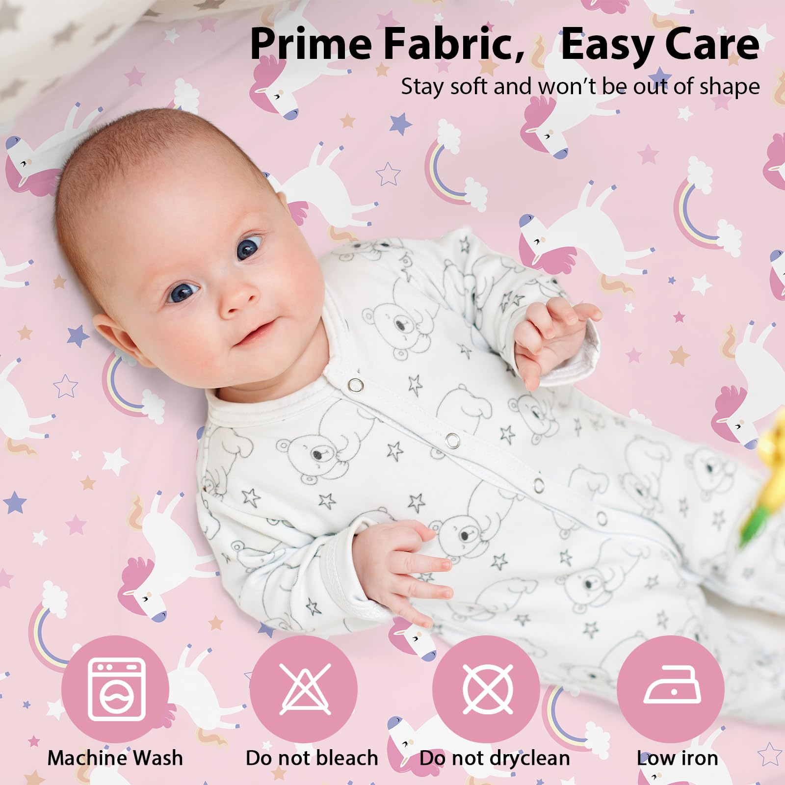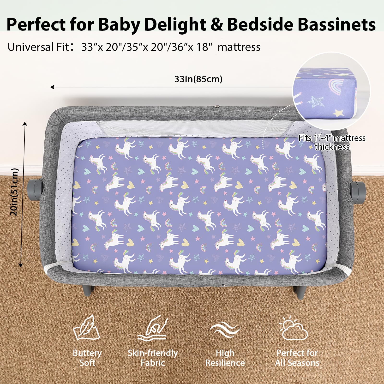 Soft & Skin-friendly Fabric: Crafted from premium microfiber with advanced knitting techniques, our baby bedside bassinet sheets are ultra-soft and gentle enough for delicate and sensitive skin. Designed to keep your baby comfortable and relaxed, they help maintain a restful sleep environment and daytime moments full of joy.
