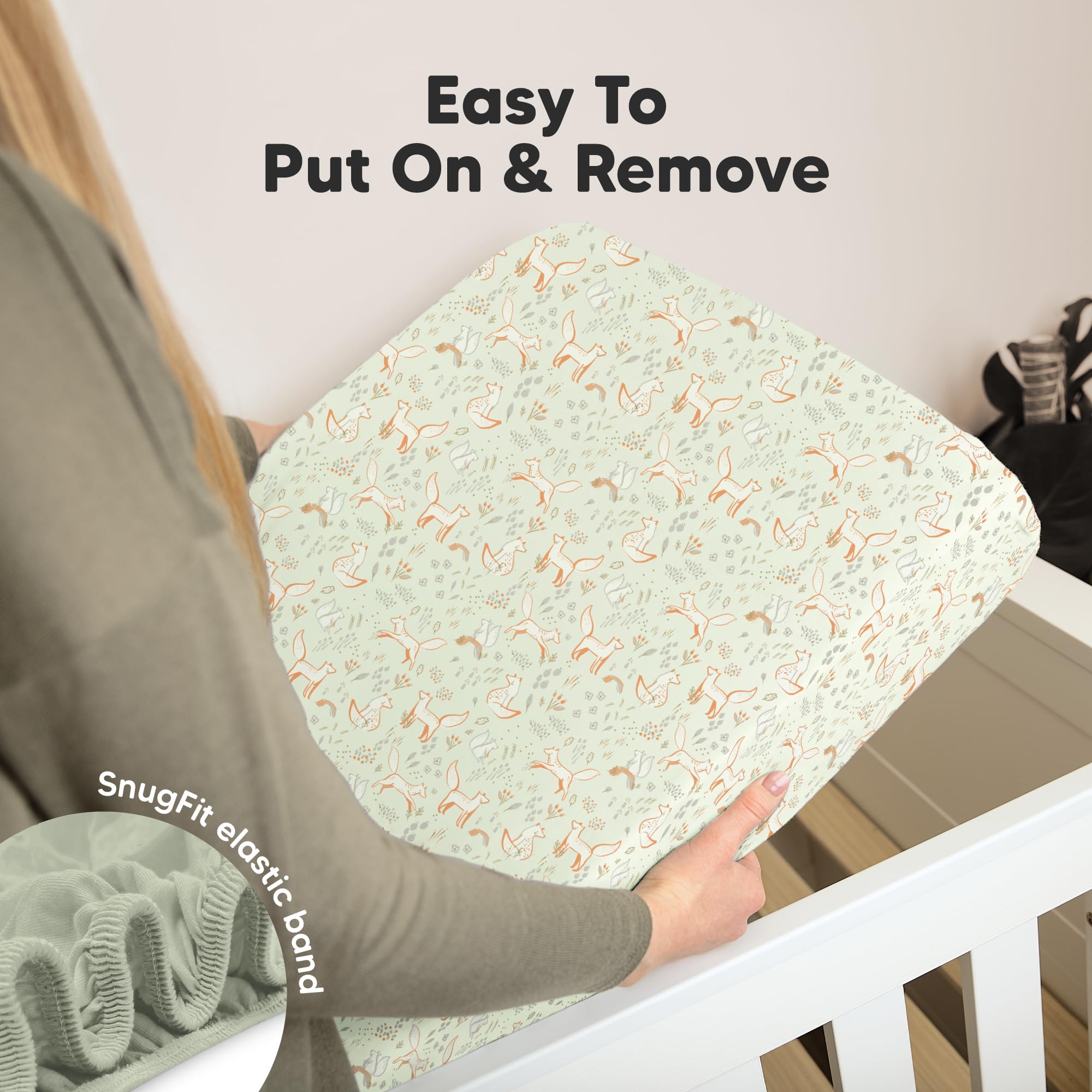 Easy To Put On - Our baby sheets for crib use SnugFit Tech, a smart fabric knit that stretches effortlessly for quick fitting and removal of the toddler bed sheets. No more struggling with rigid fabric!