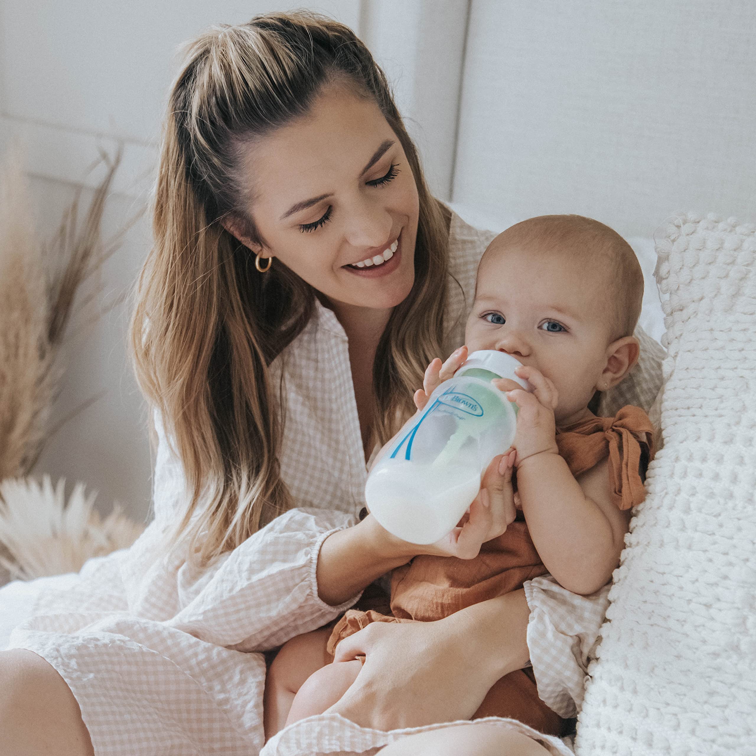 BREASTFEEDING BOTTLE. The breast-like nipple shape encourages a proper latch for a more natural bottle feeding experience and eases the transition from breast to bottle and back again.