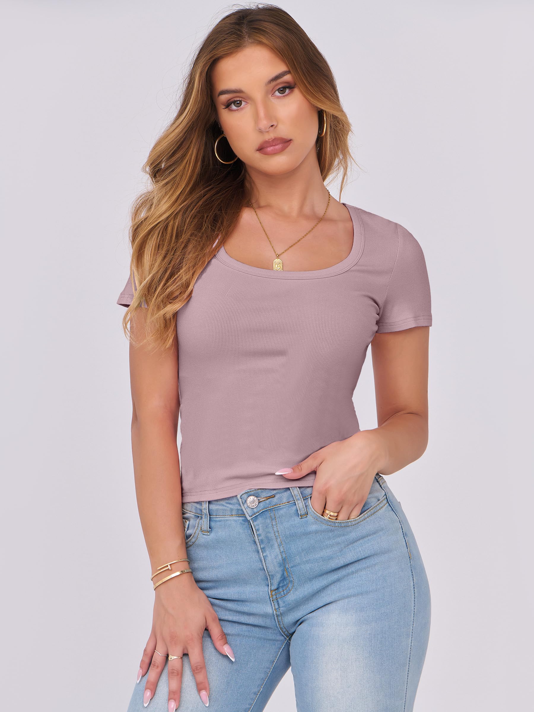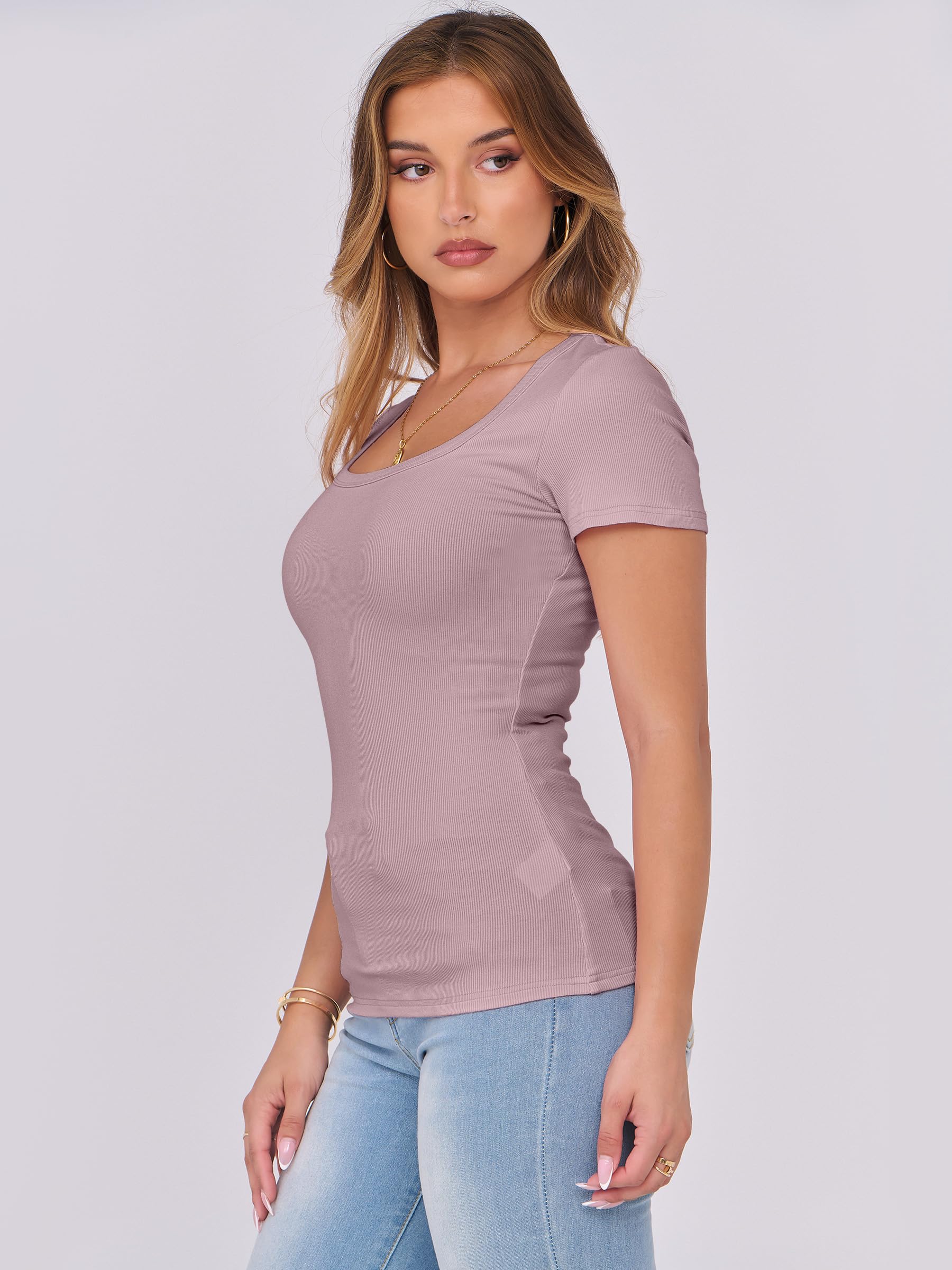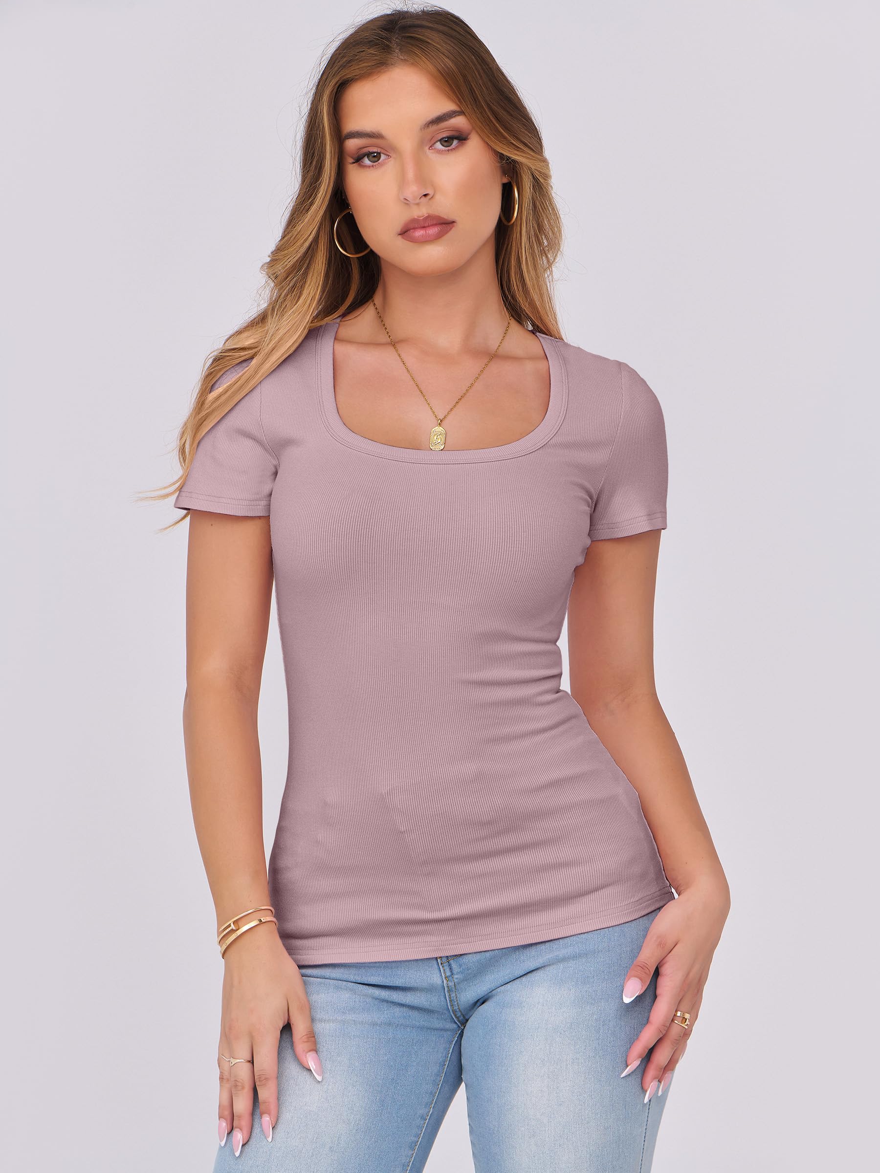 Features - Womens summer tops are designed with ribbed knit, scoop neck, short sleeve, slim fit. Suitable for daily wear, home, work, street wear, party, dates, vacation, shopping, cafes and other casual occasions.