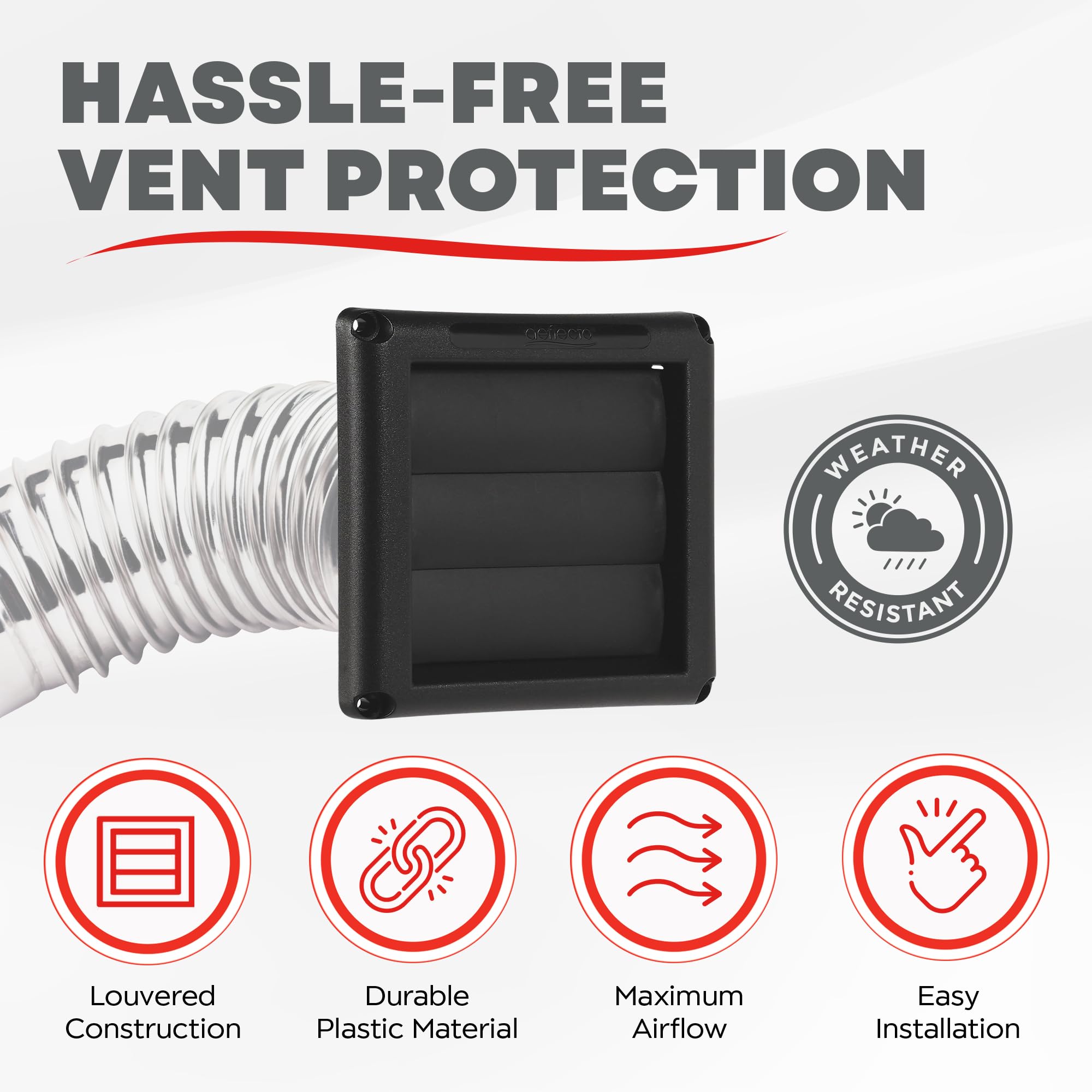 The Deflecto Supurr-Vent Louvered Dryer Vent Cover helps keep wind, rain, and snow from entering outdoor dryer vents. The vent cover is easy to install and features curved louvers for quieter operation.