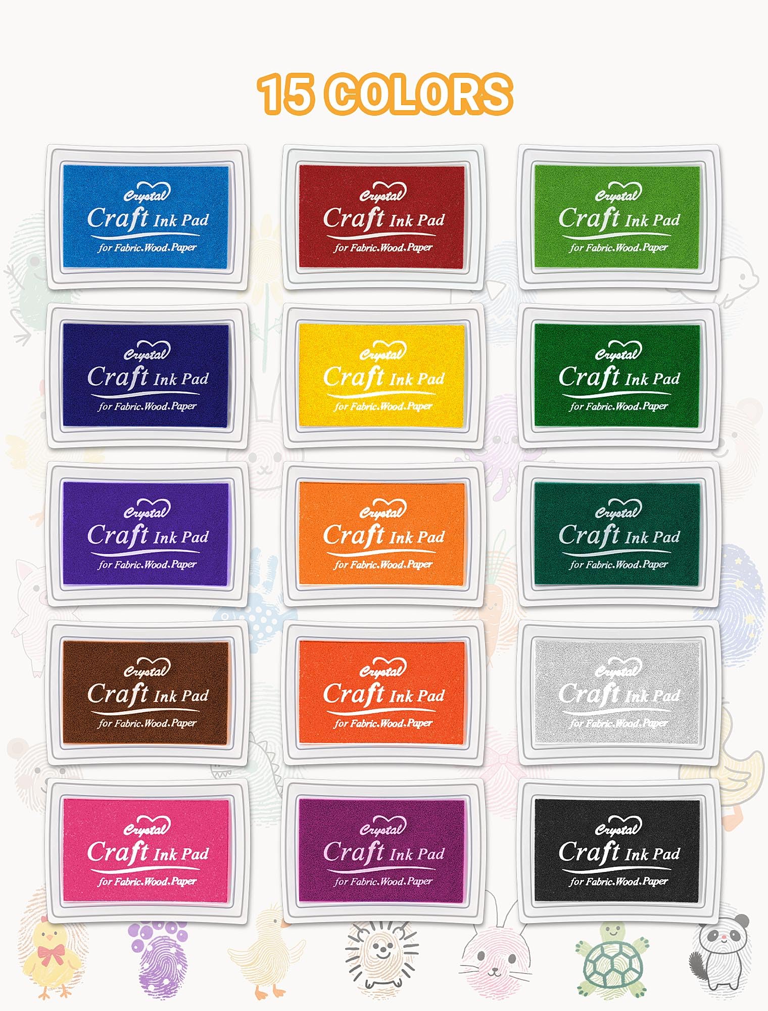 15 Colors: 15 Pack ink pads, measuring 2.9 inches x 2.1 inches x 0.7 inches, and each ink pad comes in a plastic box for easy storage and carrying,performance and ensure clear stamping