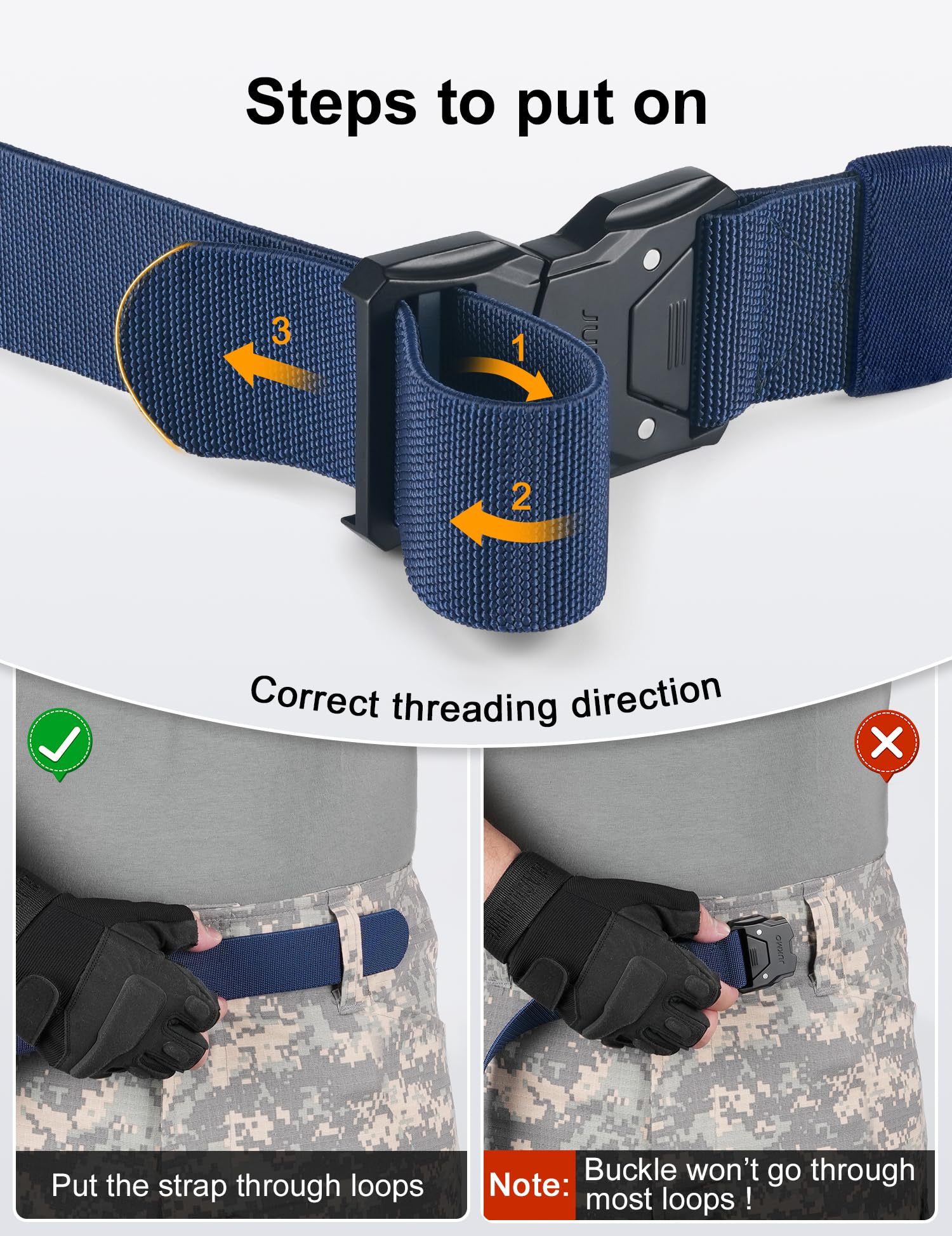 ONE BUTTON QUICK RELEASE BUCKLE:The crafted heavy-duty buckle is made of zinc alloy. As long as you push the button on the buckle, the buckle would release instantly. It is super convenient to release your pants for doing whatever you want to do. You would never meet a belt so quick convenient like this. The designed buckle has very strong load-bearing capacity, which can meet your different wearing requirements