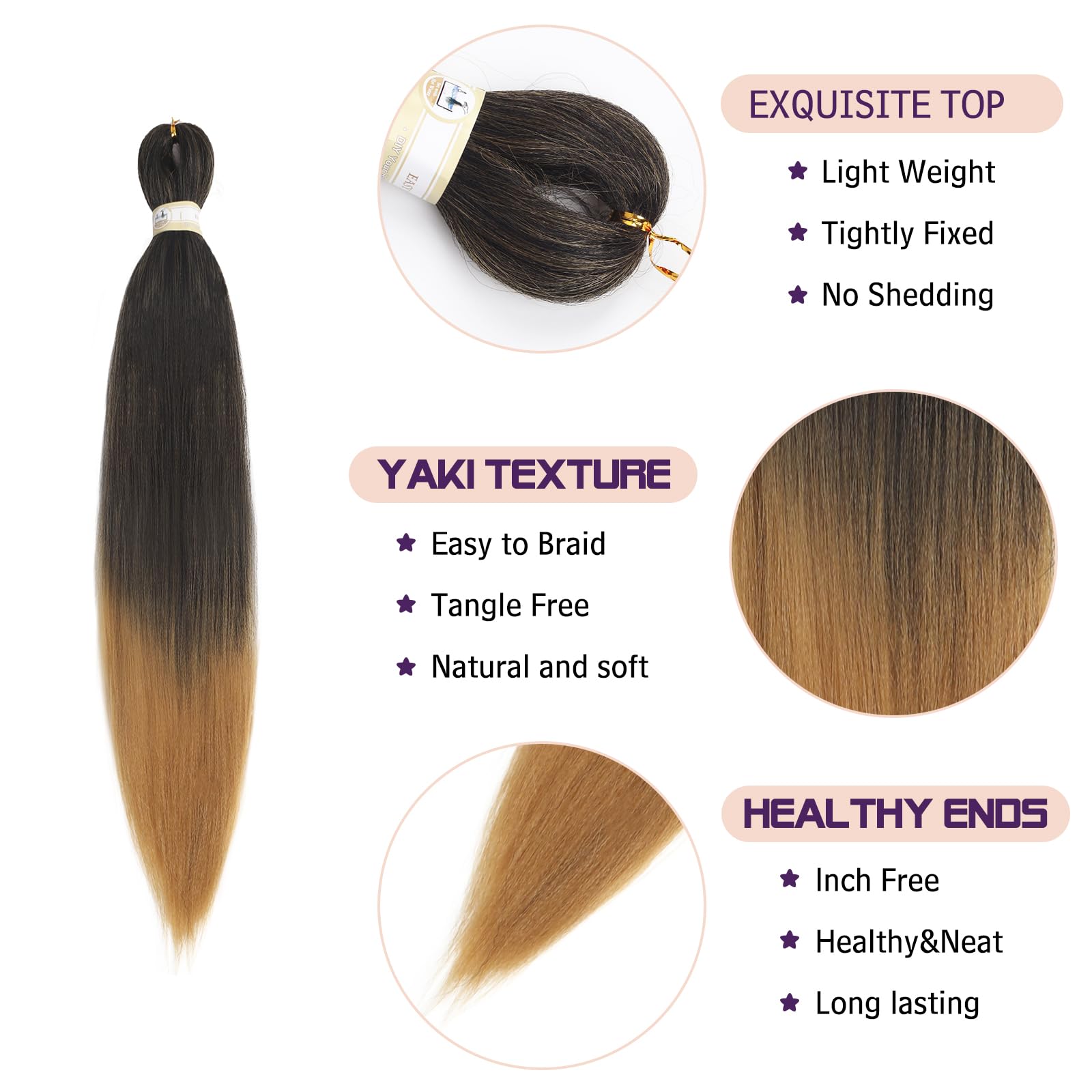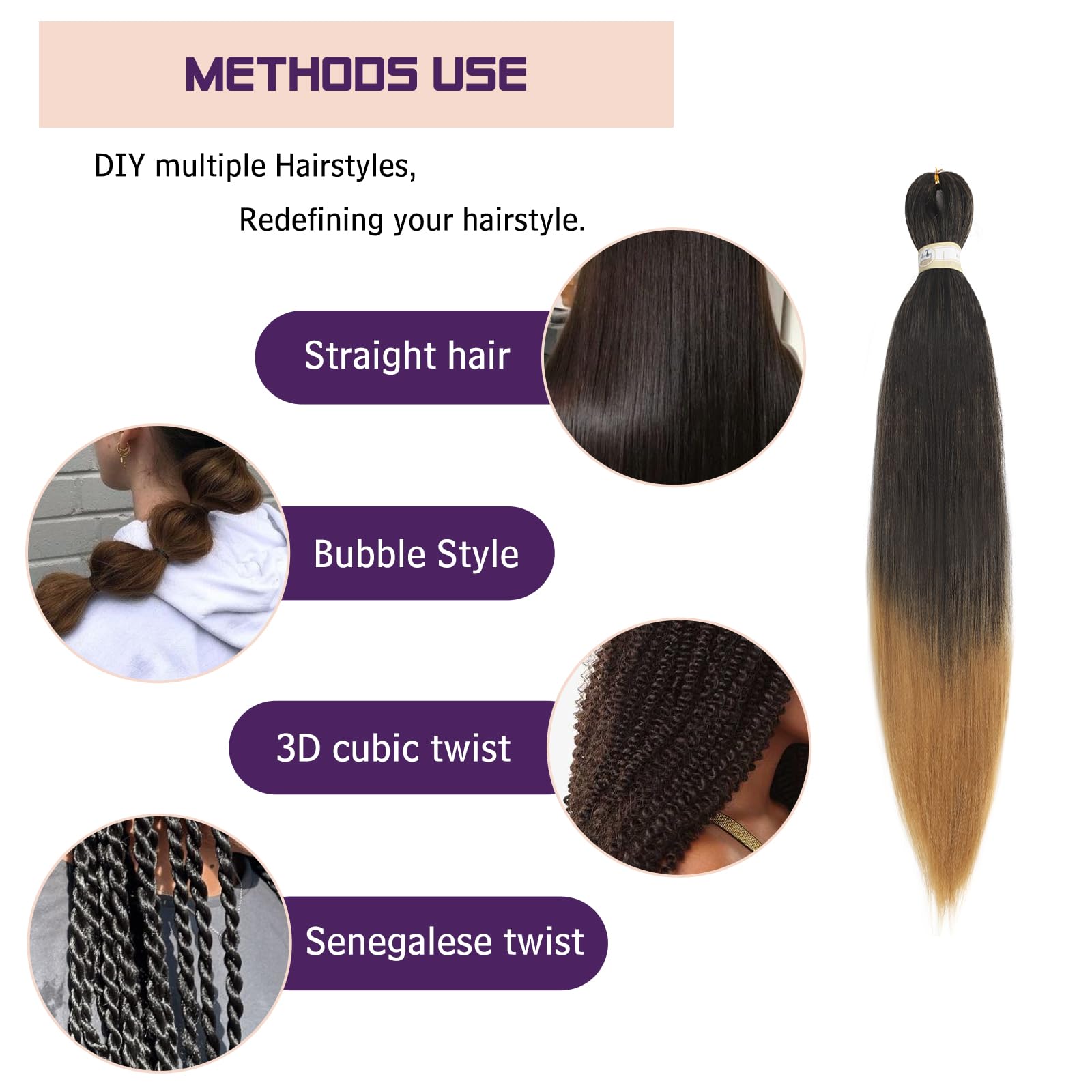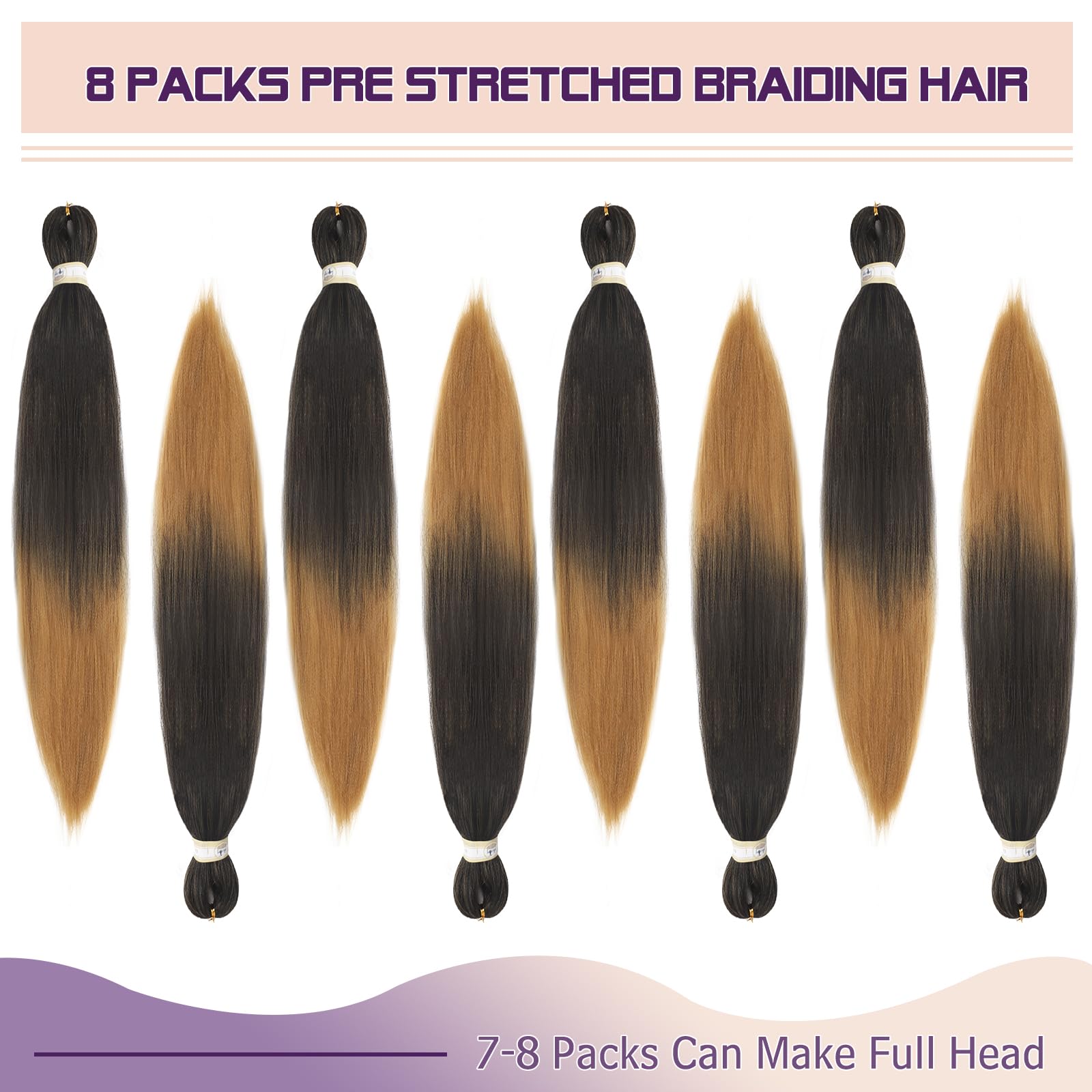 Texture: Yaki Texture,Natural Looking,Not Easy to Knot,You Don't Need to Spend a Lot of Time to Install The Ombre Pre Stretched Braiding Hair, Perfect for Twisting, Braiding and Locs and So on.