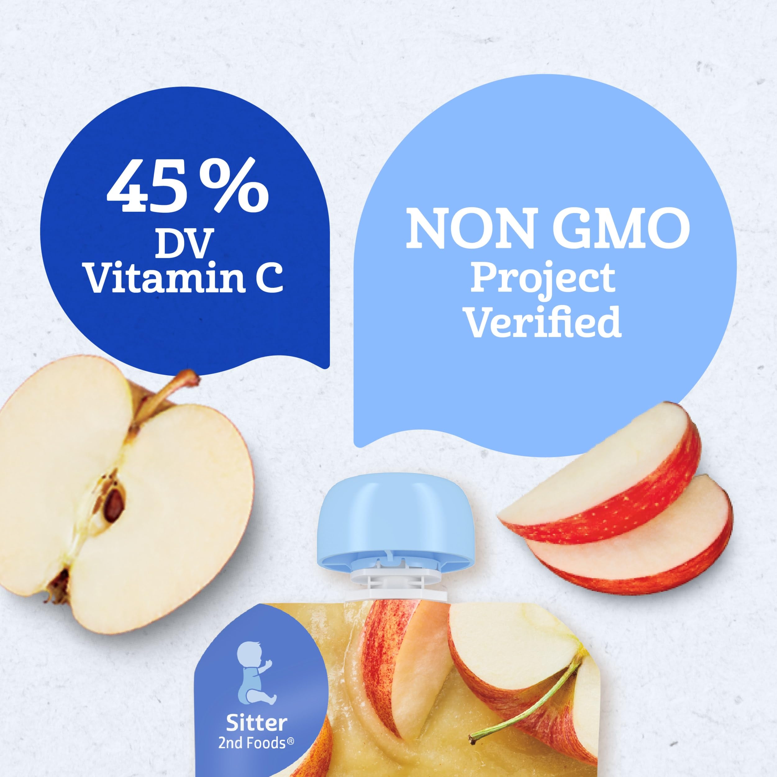 Our Gerber Apple Puree Pouch is crafted with wholesome ingredients, making it a premium choice for your little one. This fruit pouch contains 45% of the daily value of vitamin C and two servings* of fruit. These stage 2 Gerber baby food pouches are designed for babies who are ready to explore new textures and flavors, making them a great addition to your baby's diet. Gerber baby food understands the importance of providing wholesome food as your baby grows and develops. This Gerber baby food fruit is ideal for parents who seek quality in their baby's diet. *1 fruit serving is 3 tbsp for babies.